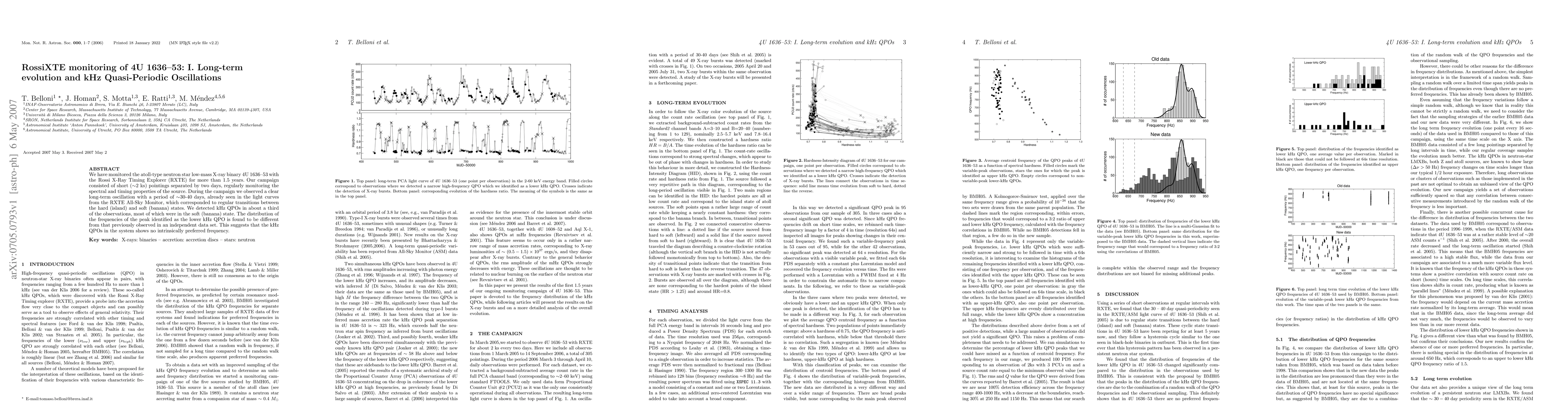 We have monitored the atoll-type neutron star low-mass X-ray binary 4U 1636-53 with the Rossi X-Ray Timing Explorer (RXTE) for more than 1.5 years. Our campaign consisted of short (~2 ks) pointings separated by two days, regularly monitoring the spectral and timing properties of the source. During the campaign we observed a clear long-term oscillation with a period of ~30-40 days, already seen in the light curves from the RXTE All-Sky Monitor, which corresponded to regular transitions between the hard (island) and soft (banana) states. We detected kHz QPOs in about a third of the observations, most of which were in the soft (banana) state. The distribution of the frequencies of the peak identified as the lower kHz QPO is found to be different from that previously observed in an independent data set. This suggests that the kHz QPOs in the system shows no intrinsically preferred frequency.