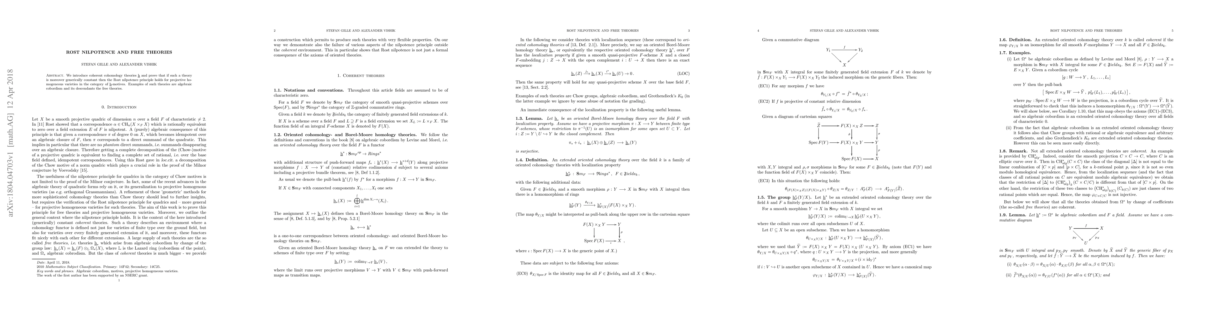Summary: This paper introduces coherent cohomology theories h_* and establishes that if they are generically constant, the Rost nilpotence principle applies to projective homogeneous varieties within h_*-motives. Examples include algebraic cobordism and its free theory descendants.