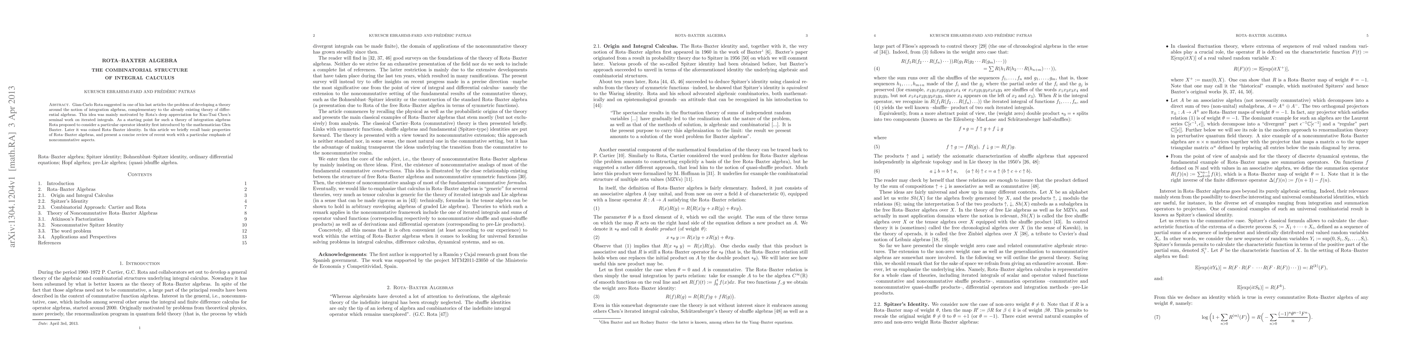 Gian-Carlo Rota suggested in one of his last articles the problem of developing a theory around the notion of integration algebras, complementary to the already existing theory of differential algebras. This idea was mainly motivated by Rota's deep appreciation for Kuo-Tsai Chen's seminal work on iterated integrals. As a starting point for such a theory of integration algebras Rota proposed to consider a particular operator identity first introduced by the mathematician Glen Baxter. Later it was coined Rota-Baxter identity. In this article we briefly recall basic properties of Rota--Baxter algebras, and present a concise review of recent work with a particular emphasis of noncommutative aspects.
