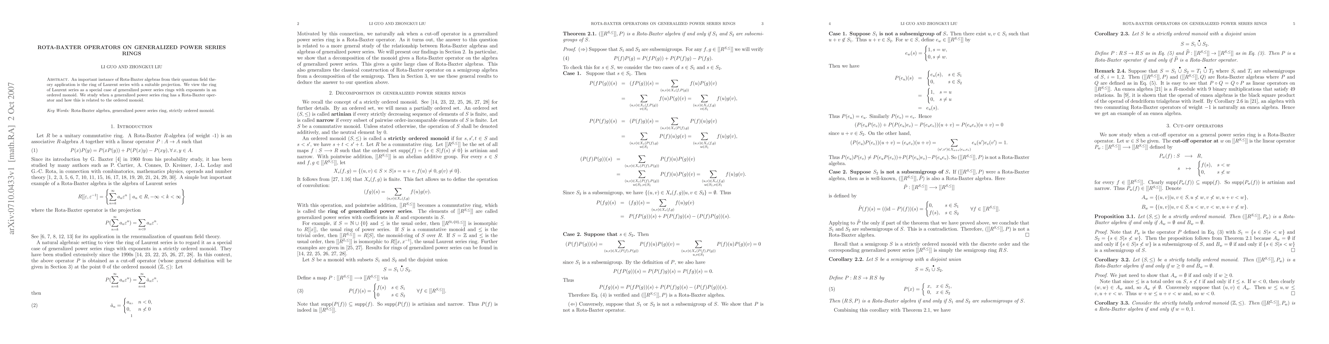 This paper explores Rota-Baxter operators within generalized power series rings, specifically focusing on the ring of Laurent series as a special case. It examines conditions under which these rings possess Rota-Baxter operators and investigates their relationship with the underlying ordered monoid.