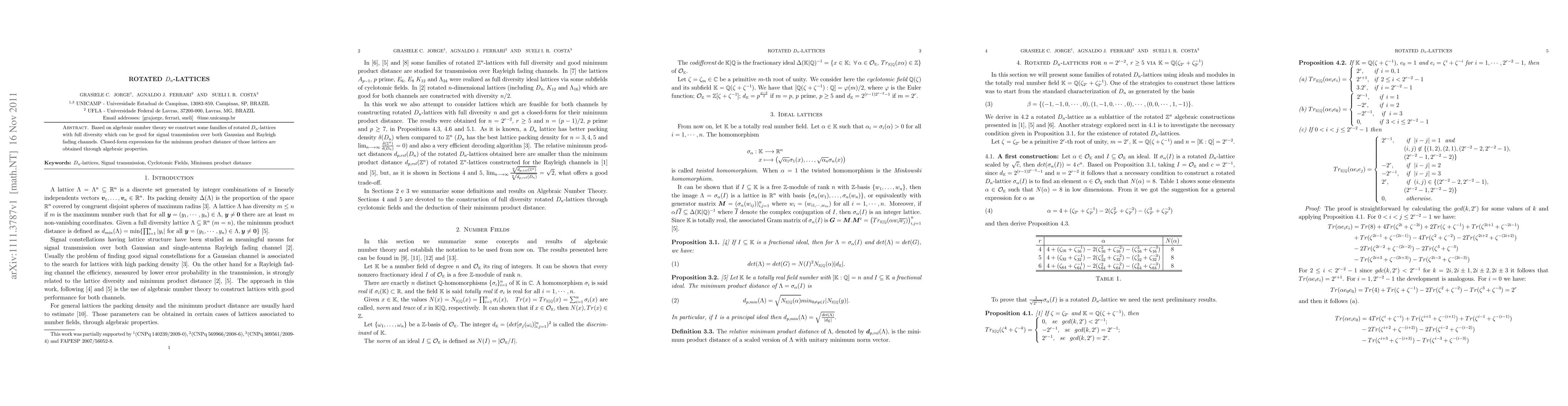 This research derives families of rotated Dn-lattices with full diversity, suitable for signal transmission over Gaussian and Rayleigh fading channels. It provides closed-form expressions for the minimum product distance using algebraic number theory.