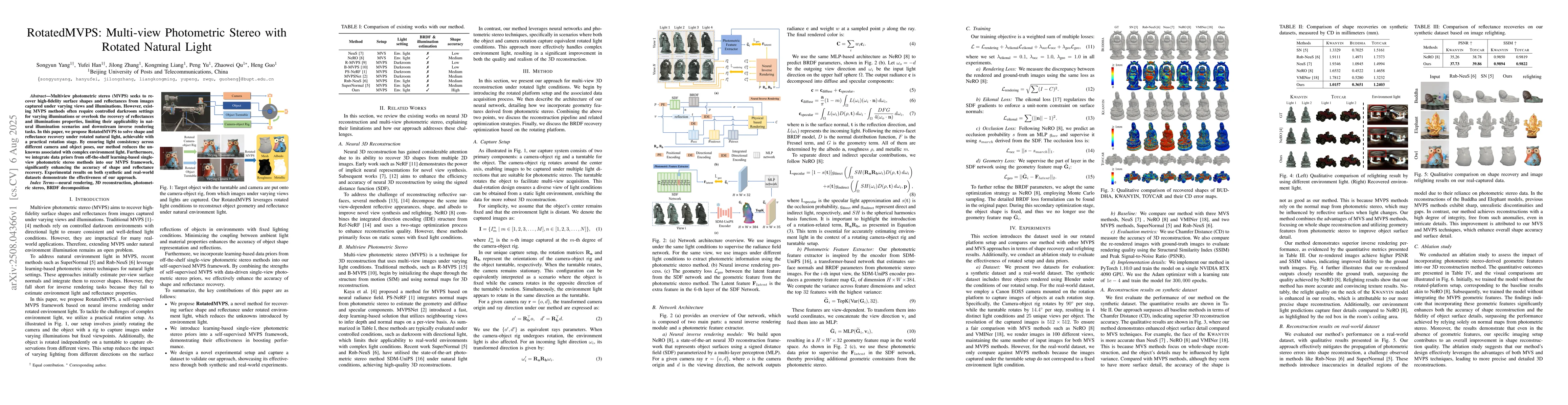 Multiview photometric stereo (MVPS) seeks to recover high-fidelity surface shapes and reflectances from images captured under varying views and illuminations. However, existing MVPS methods often require controlled darkroom settings for varying illuminations or overlook the recovery of reflectances and illuminations properties, limiting their applicability in natural illumination scenarios and downstream inverse rendering tasks. In this paper, we propose RotatedMVPS to solve shape and reflectance recovery under rotated natural light, achievable with a practical rotation stage. By ensuring light consistency across different camera and object poses, our method reduces the unknowns associated with complex environment light. Furthermore, we integrate data priors from off-the-shelf learning-based single-view photometric stereo methods into our MVPS framework, significantly enhancing the accuracy of shape and reflectance recovery. Experimental results on both synthetic and real-world datasets demonstrate the effectiveness of our approach.