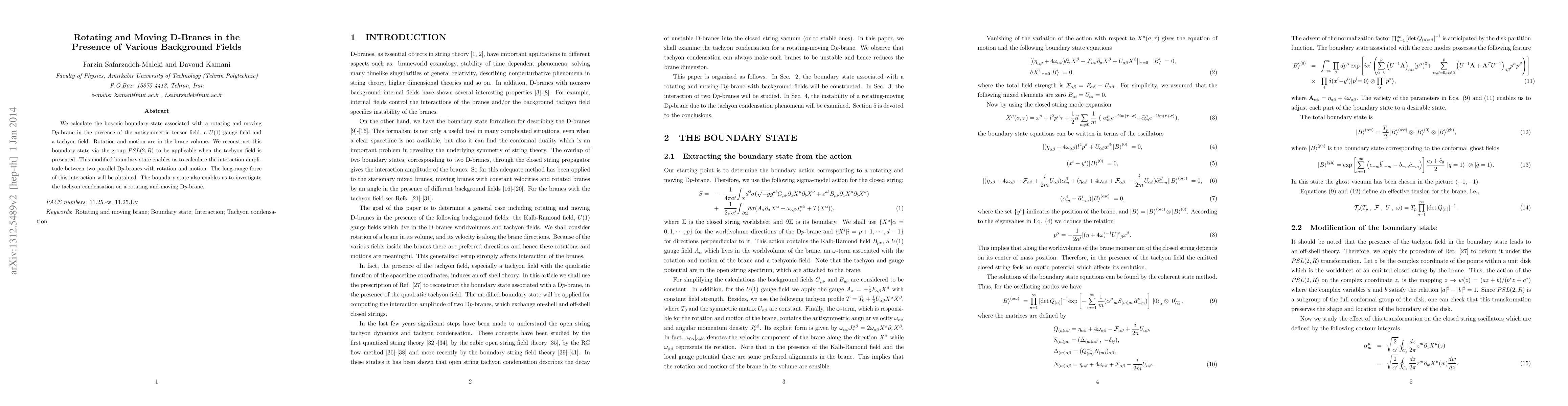 Researchers calculated the boundary state of rotating and moving D-branes in various background fields, enabling them to study interactions between parallel D-branes with rotation and motion, including long-range forces and tachyon condensation.