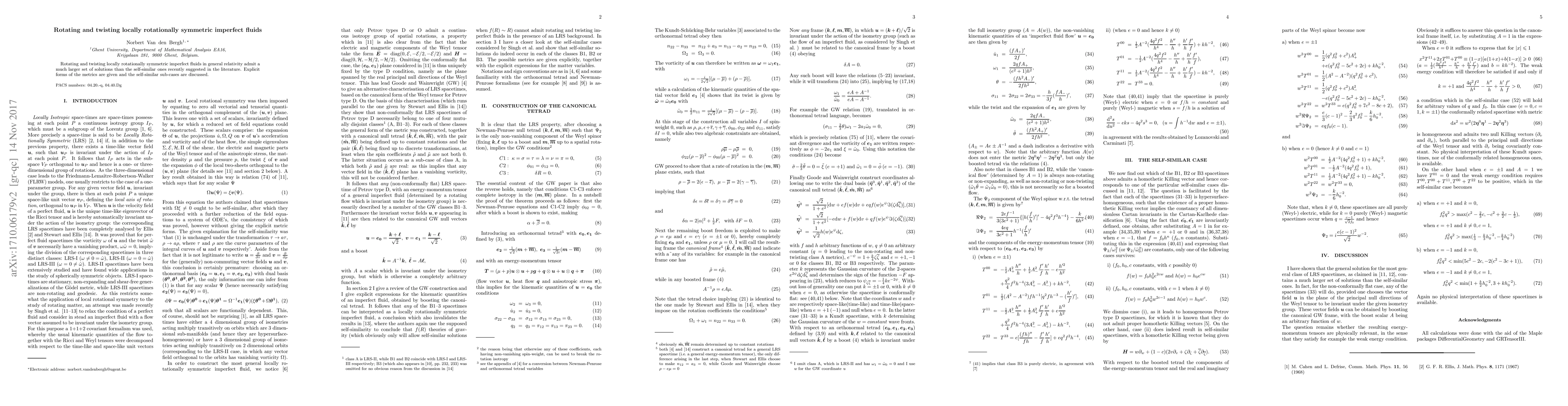 Rotating and twisting locally rotationally symmetric imperfect fluids in general relativity admit a much larger set of solutions than the self-similar ones recently suggested in the literature. Explicit forms of the metrics are given and the self-similar sub-cases are discussed.