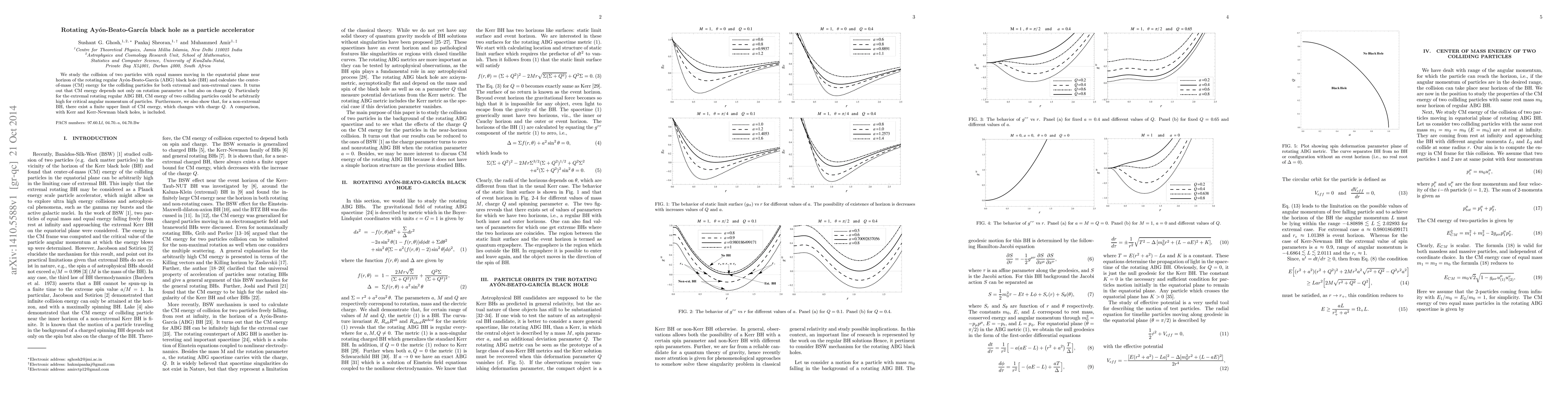 Researchers study a rotating black hole as a potential particle accelerator, finding that the collision energy of two particles depends on both the black hole's rotation parameter and charge.