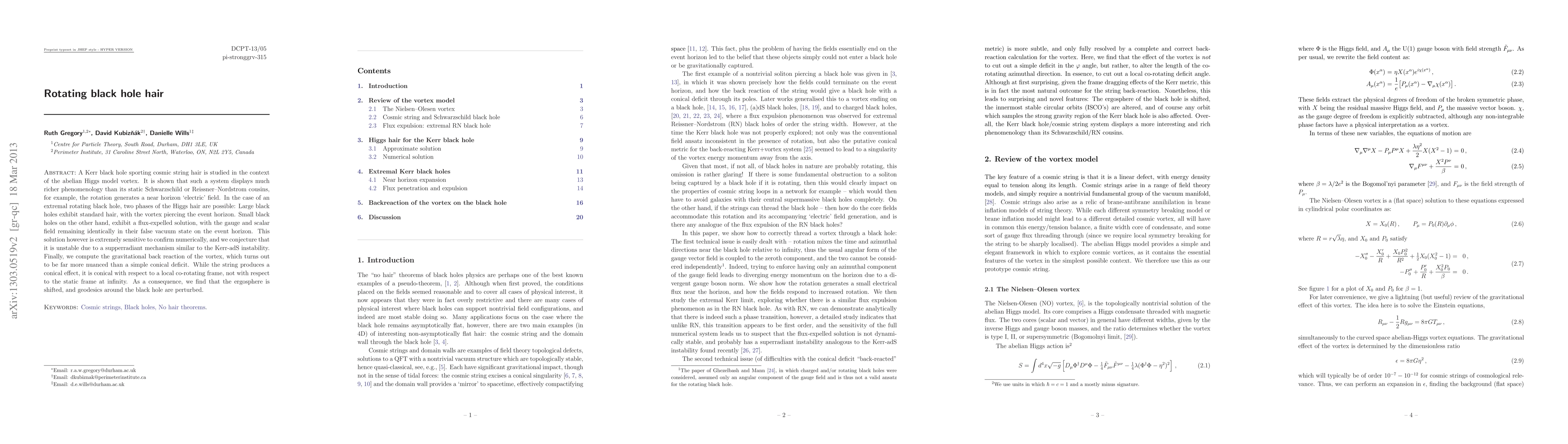 The paper presents a detailed analysis of the gravitational backreaction of an Abelian Higgs vortex on a Kerr black hole, including the identification of new phenomena such as the generation of a near-horizon electric field and the shift in the ergosphere.
