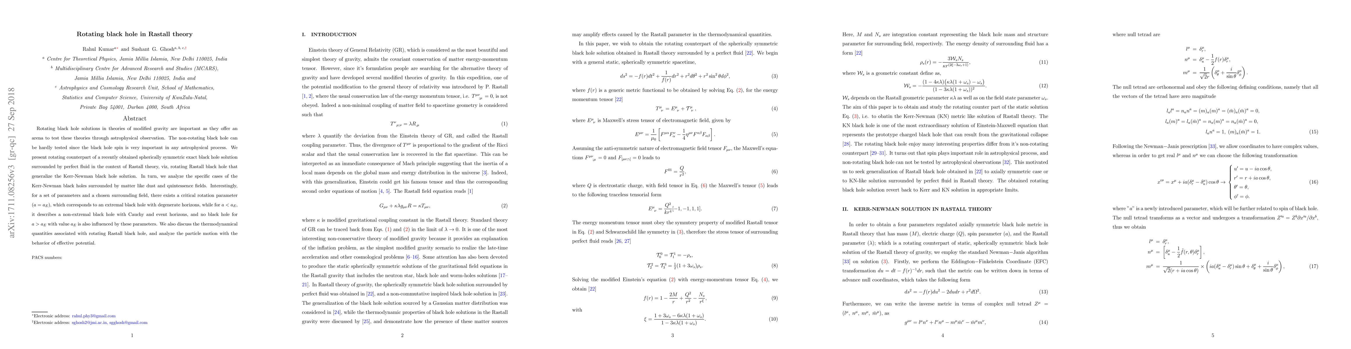 hole spin is very important in any astrophysical process. We present rotating