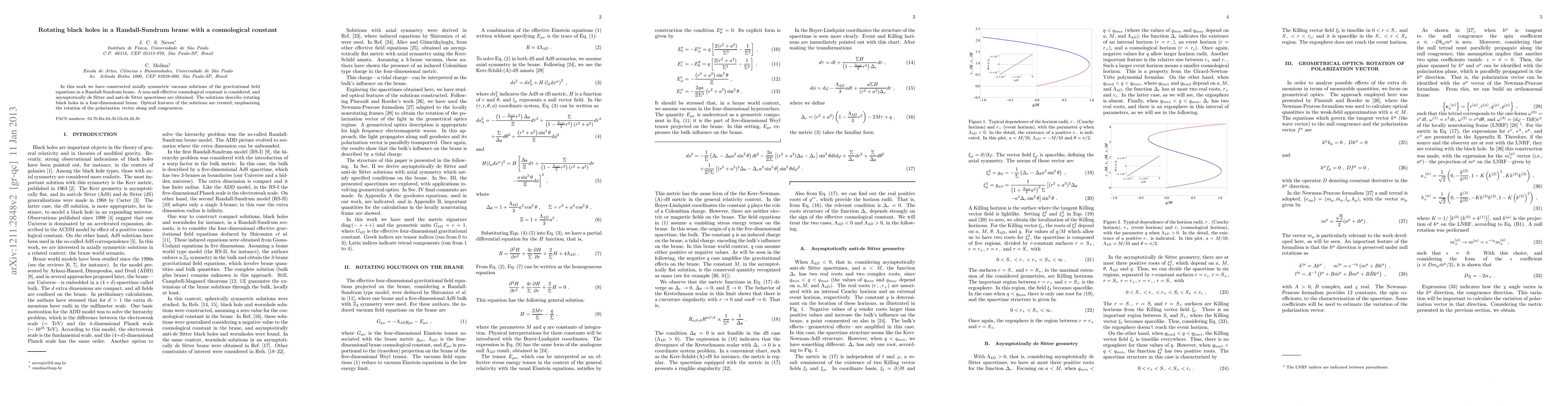 In this work we have constructed axially symmetric vacuum solutions of the gravitational field equations in a Randall-Sundrum brane. A non-null effective cosmological constant is considered, and asymptotically de Sitter and anti-de Sitter spacetimes are obtained. The solutions describe rotating black holes in a four-dimensional brane. Optical features of the solutions are treated, emphasizing the rotation of the polarization vector along null congruences.