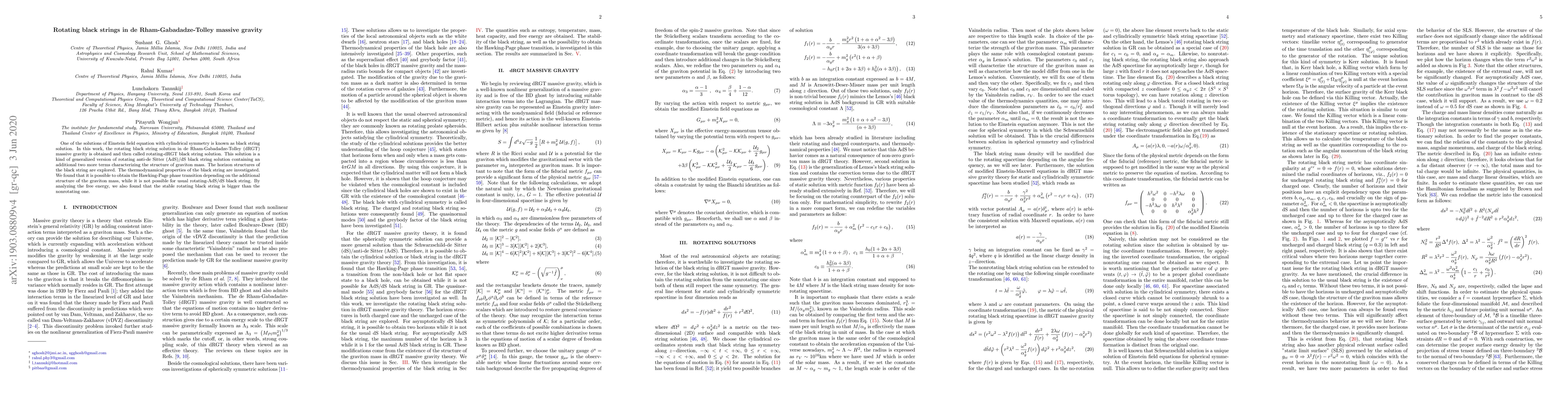 One of the solutions of Einstein field equation with cylindrical symmetry is known as black string solution. In this work, the rotating black string solution in dRGT massive gravity is obtained and then called rotating-dRGT black string solution. This solution is a kind of generalized version of rotating AdS/dS black sting solution containing an additional two more terms characterizing the structure of graviton mass. The horizon structures of the black string are explored. The thermodynamical properties of the black string are investigated. We found that it is possible to obtain the Hawking-Page phase transition depending on the additional structure of the graviton mass, while it is not possible for rotating-AdS/dS black string. By analyzing the free energy, we also found that the stable rotating black string is bigger than the non-rotating one.