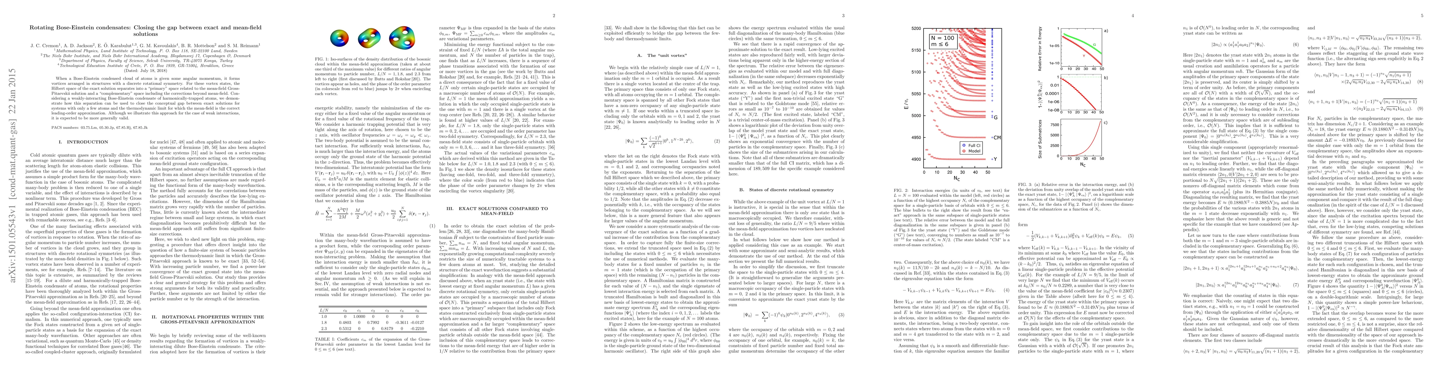 This paper demonstrates how the separation of the Hilbert space in rotating Bose-Einstein condensates can bridge the gap between exact solutions for small systems and mean-field approximations in the thermodynamic limit. The approach is illustrated for weakly-interacting harmonically-trapped atoms, with expectations for broader applicability.