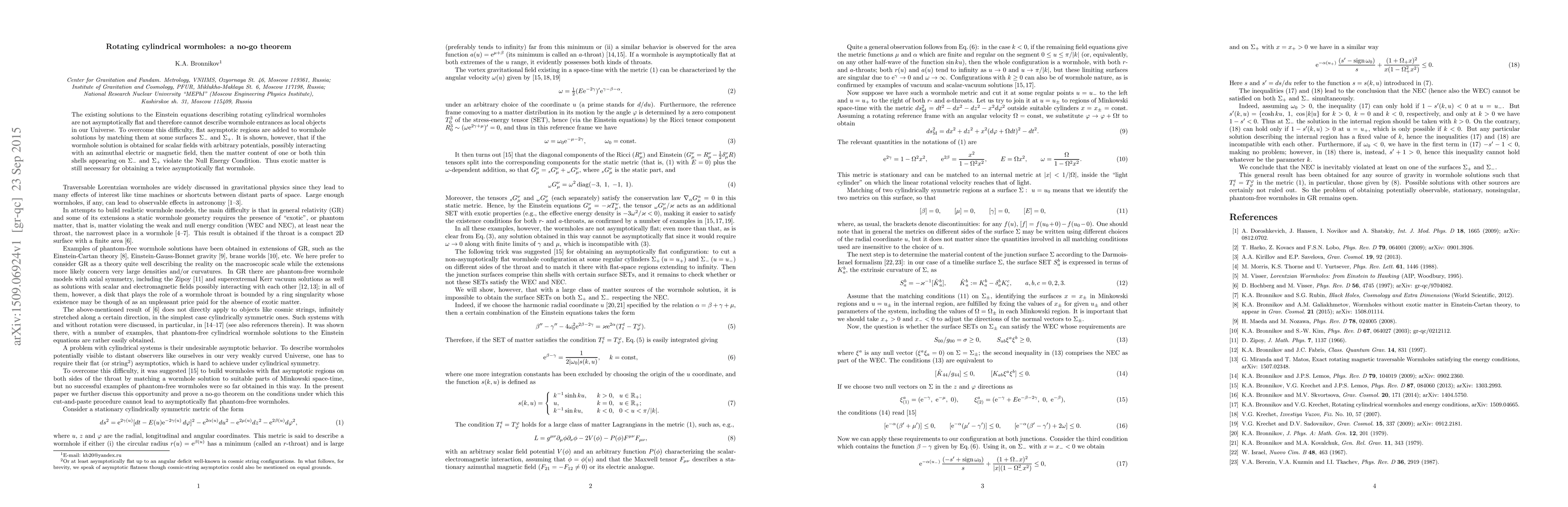 The existing solutions to the Einstein equations describing rotating cylindrical wormholes are not asymptotically flat and therefore cannot describe wormhole entrances as local objects in our Universe. To overcome this difficulty, flat asymptotic regions are added to wormhole solutions by matching them at some surfaces $\Sigma_-$ and $\Sigma_+$. It is shown, however, that if the wormhole solution is obtained for scalar fields with arbitrary potentials, possibly interacting with an azimuthal electric or magnetic field, then the matter content of one or both thin shells appearing on $\Sigma_-$ and $\Sigma_+$ violate the Null Energy Condition. Thus exotic matter is still necessary for obtaining a twice asymptotically flat wormhole.