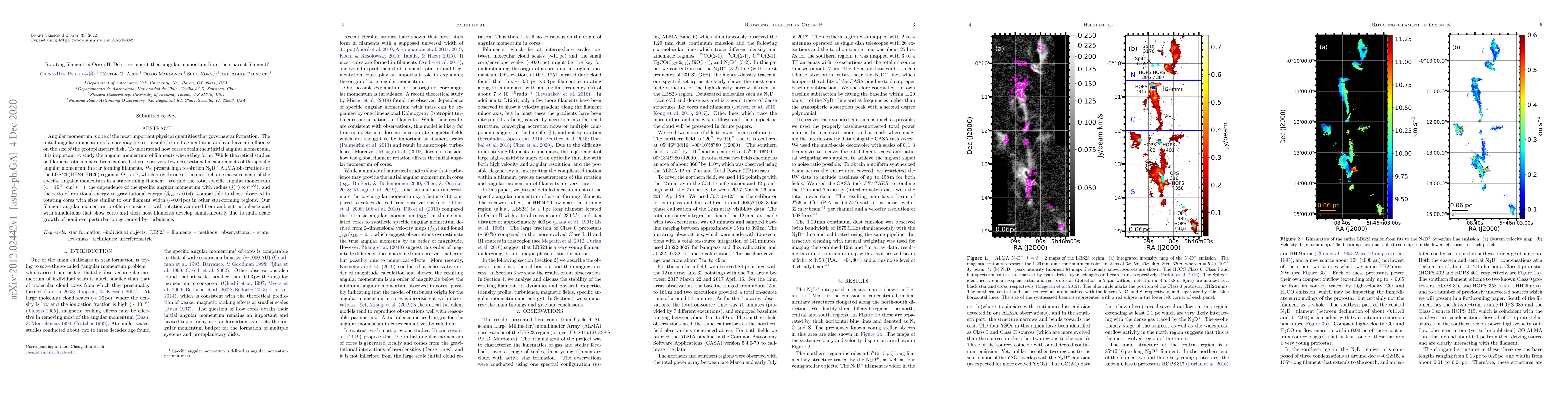 This paper investigates the angular momentum in star-forming filaments using high-resolution ALMA observations of the Orion B region. It finds that the filament's angular momentum profile suggests cores may inherit angular momentum from their parent filament, supporting theories of simultaneous core and filament development driven by turbulence.