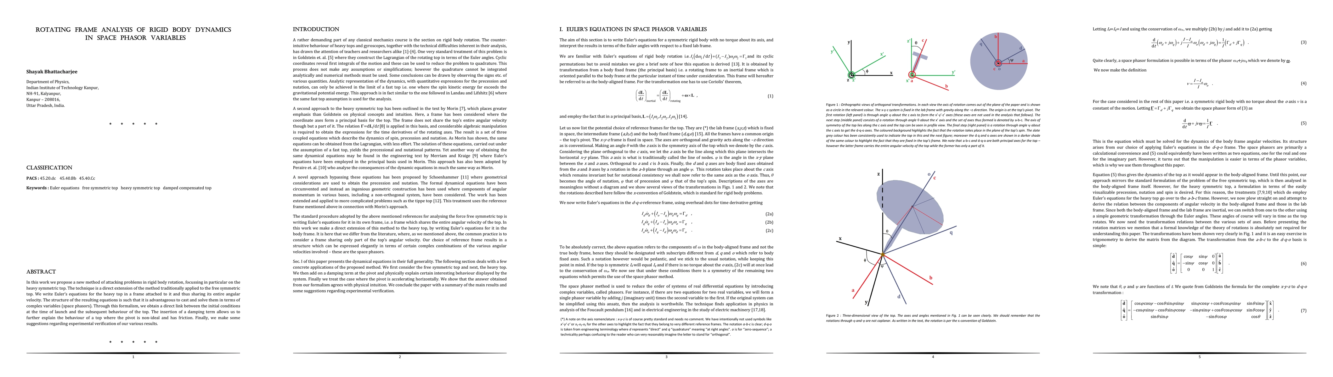 A new method is introduced for analyzing rigid body dynamics in space phasor variables, focusing on extracting equations from the body frame to the lab frame using Euler's equations and then solving them with a space phasor approach.