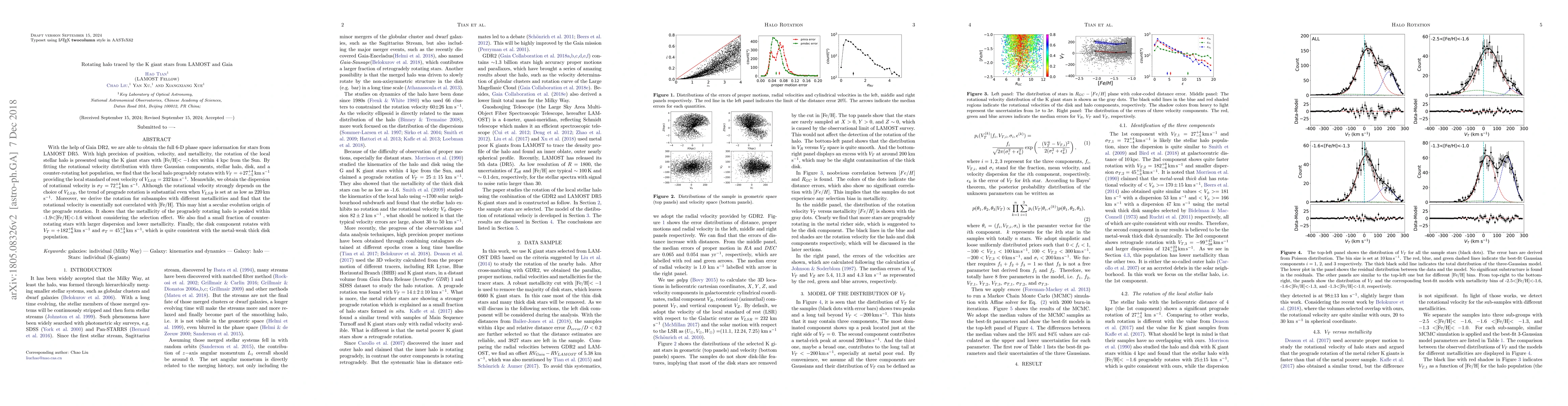 With the help of Gaia DR2, we are able to obtain the full 6-D phase space information for stars from LAMOST DR5. With high precision of position, velocity, and metallicity, the rotation of the local stellar halo is presented using the K giant stars with [Fe/H]$<-1$ dex within 4 kpc from the Sun. By fitting the rotational velocity distribution with three Gaussian components, stellar halo, disk, and a counter-rotating hot population, we find that the local halo progradely rotates with $V_T=+27^{+4}_{-5}$ km s$^{-1}$ providing the local standard of rest velocity of $V_{LSR}=232$ km s$^{-1}$. Meanwhile, we obtain the dispersion of rotational velocity is $\sigma_{T}=72^{+4}_{-4}$ km s$^{-1}$. Although the rotational velocity strongly depends on the choice of $V_{LSR}$, the trend of prograde rotation is substantial even when $V_{LSR}$ is set at as low as 220 km s$^{-1}$. Moreover, we derive the rotation for subsamples with different metallicities and find that the rotational velocity is essentially not correlated with [Fe/H]. This may hint a secular evolution origin of the prograde rotation. It shows that the metallicity of the progradely rotating halo is peaked within -1.9$<$[Fe/H]$<$-1.6 without considering the selection effect. We also find a small fraction of counter-rotating stars with larger dispersion and lower metallicity. Finally, the disk component rotates with $V_T=+182^{+6}_{-6}$ km s$^{-1}$ and $\sigma_T=45^{+3}_{-3}$ km s$^{-1}$, which is quite consistent with the metal-weak thick disk population.