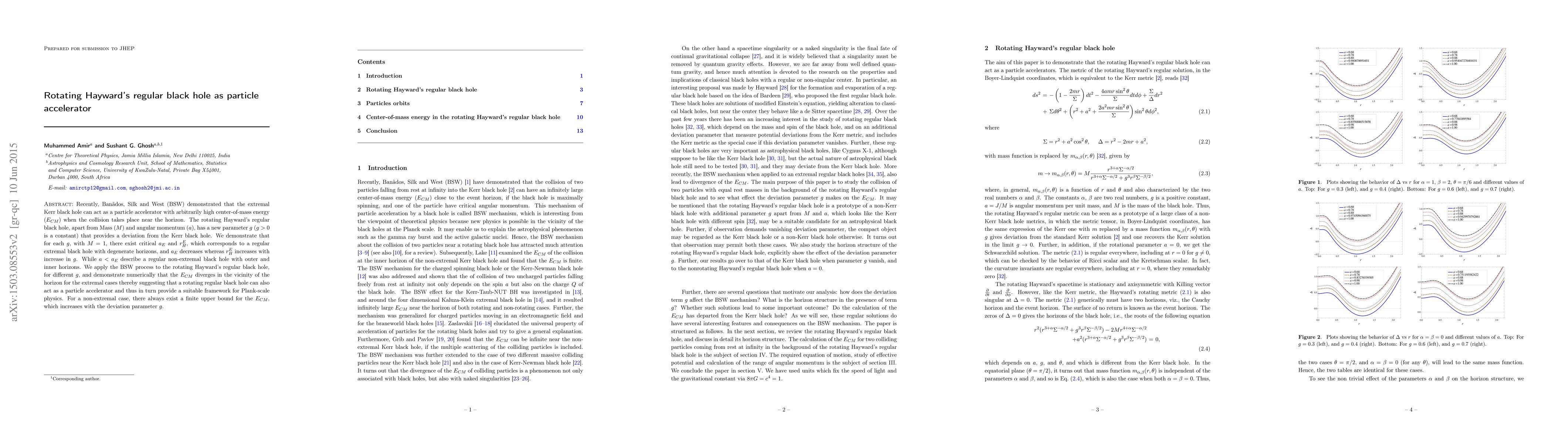 This paper explores the particle acceleration potential of rotating Hayward's regular black holes using the BSW mechanism. It finds that these black holes can act as particle accelerators, especially in extremal cases where center-of-mass energy diverges near the horizon, providing a framework for Planck-scale physics.