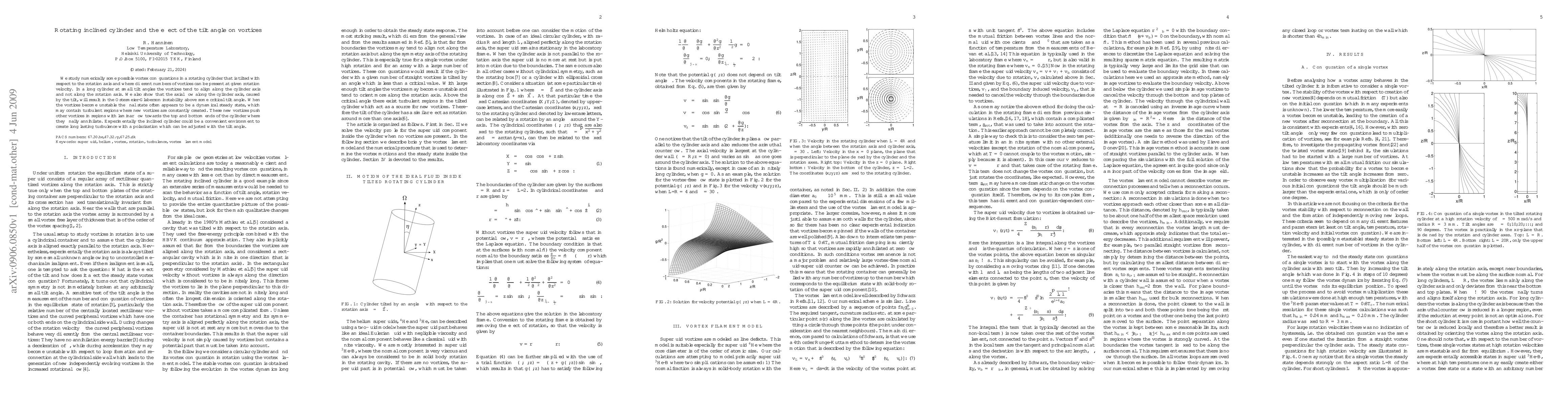 This research numerically investigates vortex configurations in a rotating inclined cylinder, revealing that vortex alignment depends on tilt angle and rotation velocity. At small tilt angles, vortices align along the cylinder axis, while above a critical tilt angle, axial flow induces the Ostermeier-Glaberson instability, leading to turbulence and vortex annihilation at cylinder ends.