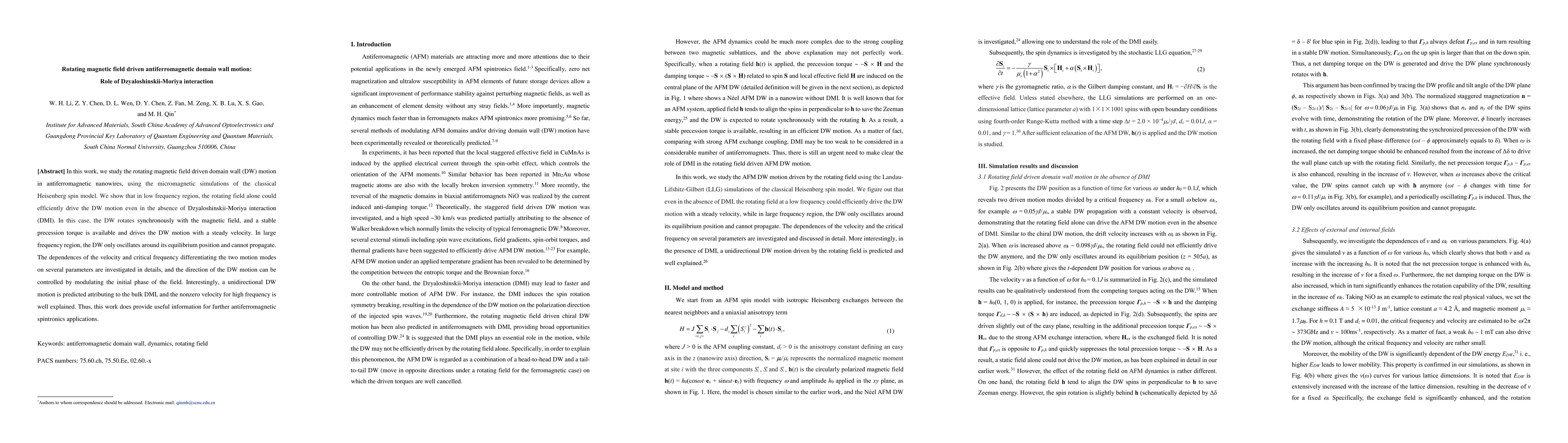 The paper presents detailed micromagnetic simulations revealing the interplay between rotating magnetic fields and DMI in driving antiferromagnetic domain wall motion, providing a comprehensive understanding of the underlying mechanisms.