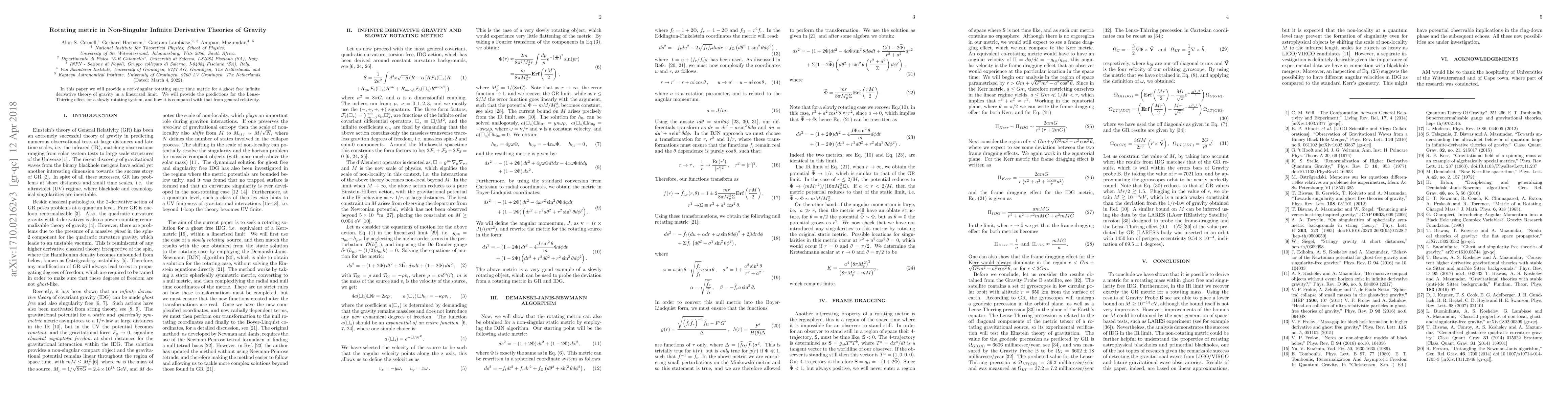 The paper presents a non-singular rotating metric for ghost-free infinite derivative gravity and compares its Lense-Thirring effect predictions with general relativity, providing a valuable tool for probing deviations from GR in the IR limit.