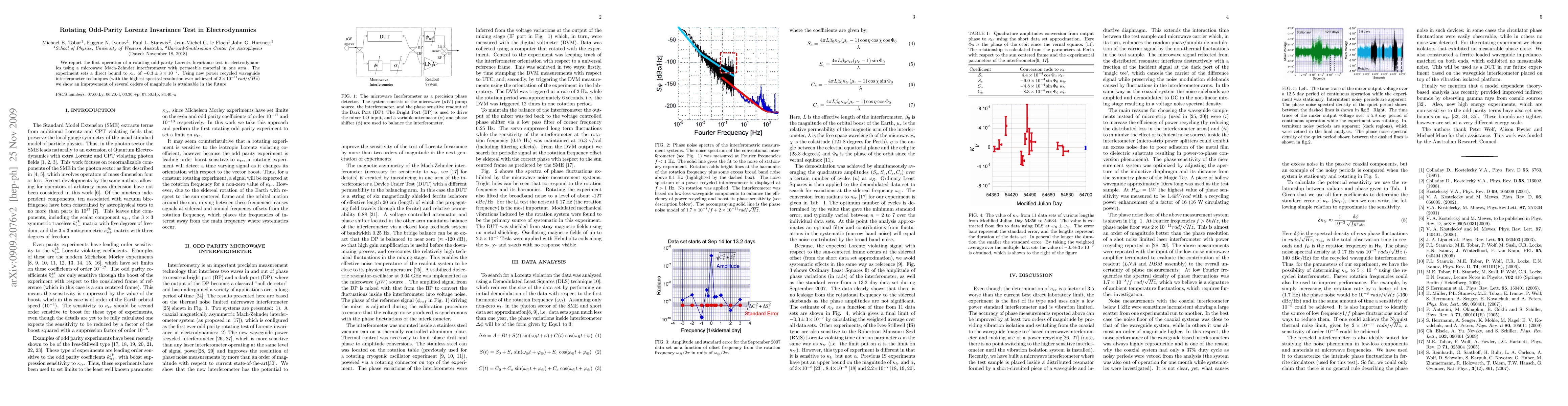 This paper details a novel rotating odd-parity Lorentz Invariance test in electrodynamics using a microwave interferometer, achieving a bound of $-0.3\pm 3\times10^{-7}$ for $\kappa_{tr}$. The study also introduces advanced waveguide techniques that promise significant future improvements in measurement precision.