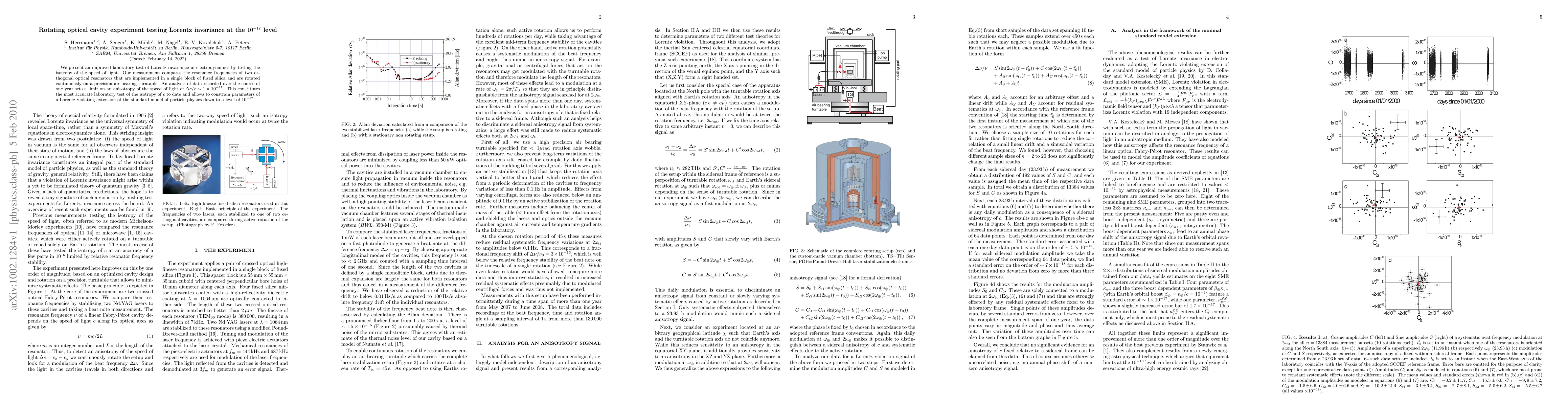 This paper reports an advanced experiment testing Lorentz invariance by measuring the isotropy of light speed using rotating optical cavities in fused silica. The experiment sets a new limit on speed of light anisotropy at 10^-17, providing the most precise test to date and constraining Lorentz-violating parameters in particle physics.