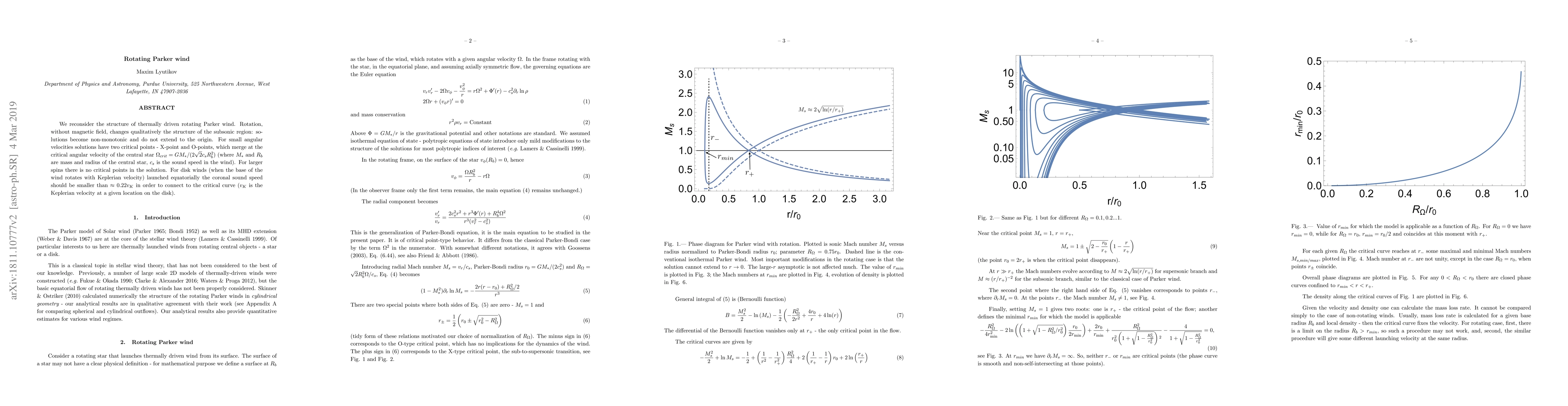 We reconsider the structure of thermally driven rotating Parker wind. Rotation, without \Bf, changes qualitatively the structure of the subsonic region: solutions become non-monotonic and do not extend to the origin. For small angular velocities solutions have two critical points - X-point and O-points, which merge at the critical angular velocity of the central star $\Omega_{crit} = G M_\ast/(2 \sqrt{2} c_s R_{b}^2)$ (where $M_\ast$ and $R_{b}$ are mass and radius of the central star, $c_s$ is the sound speed in the wind). For larger spins there is no critical points in the solution. For disk winds (when the base of the wind rotates with Keplerian velocity) launched equatorially the coronal sound speed should be smaller than $\approx 0.22 v_K$ in order to connect to the critical curve ($v_K$ is the Keplerian velocity at a given location on the disk).