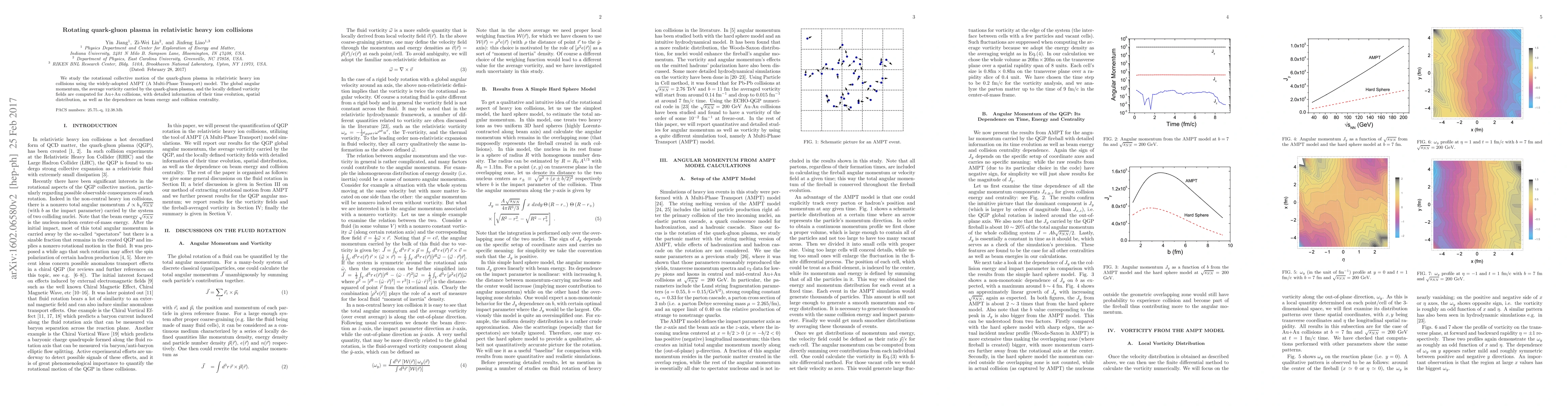 This paper investigates the rotational dynamics of quark-gluon plasma in relativistic heavy ion collisions using the AMPT model, focusing on global angular momentum, average vorticity, and spatial distribution of vorticity fields in Au+Au collisions. The study also examines how these factors vary with beam energy and collision centrality.