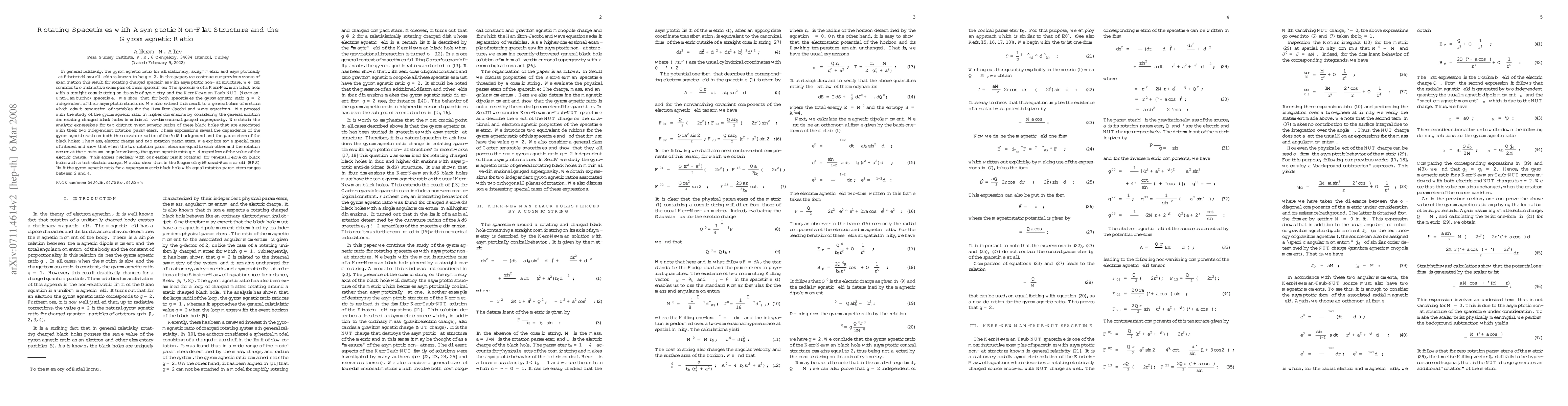 This paper explores the gyromagnetic ratio in rotating charged spacetimes with non-flat asymptotic structures, confirming that g=2 for Kerr-Newman black holes with cosmic strings and Taub-NUT spacetimes. It extends this to higher dimensions, revealing that in five-dimensional gauged supergravity, the ratio depends on the AdS curvature radius and black hole parameters, with g=4 when rotations are at maximum angular velocity.