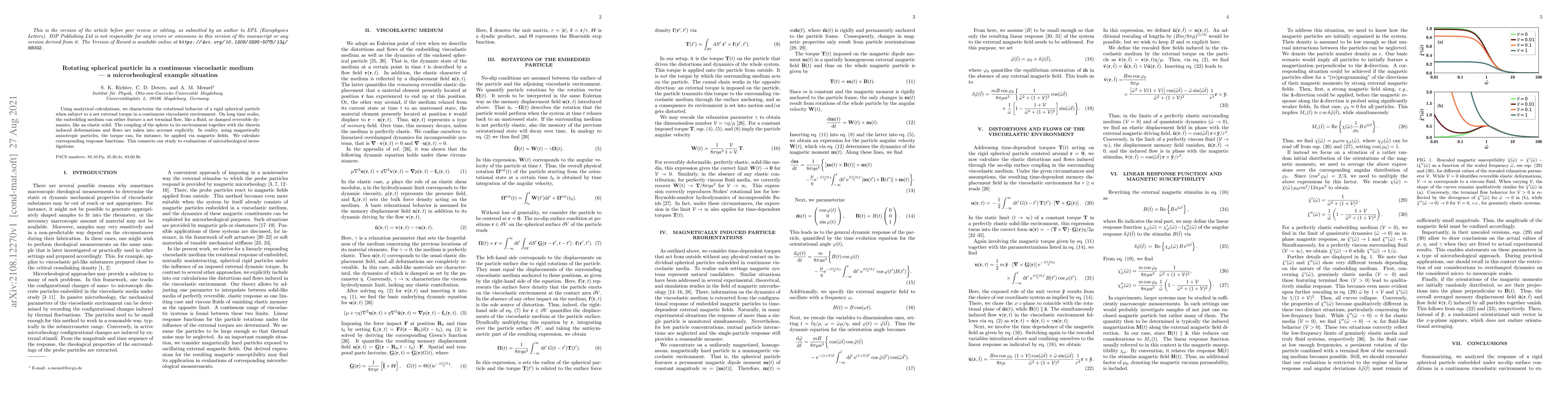 Using analytical calculations, we characterize the rotational behavior of a rigid spherical particle when subject to a net external torque in a continuous viscoelastic environment. On long time scales, the embedding medium can either feature a net terminal flow, like a fluid, or damped reversible dynamics, like an elastic solid. The coupling of the sphere to its environment together with the therein induced deformations and flows are taken into account explicitly. In reality, using magnetically anisotropic particles, the torque can, for instance, be applied via magnetic fields. We calculate corresponding response functions. This connects our study to evaluations of microrheological investigations.