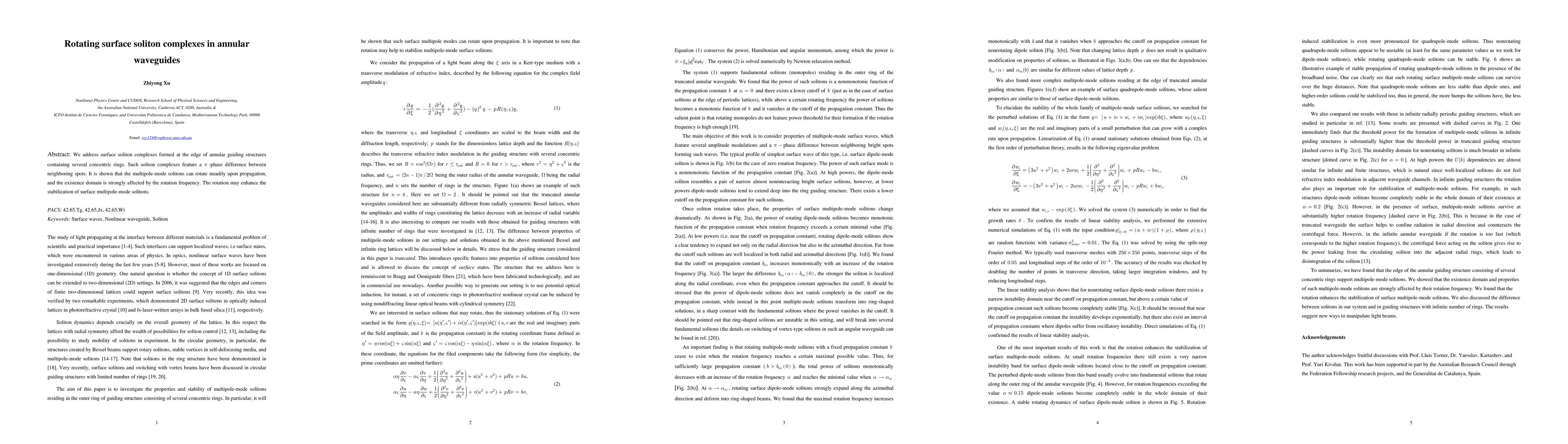 We address surface soliton complexes formed at the edge of annular guiding structures containing several concentric rings. Such soliton complexes feature a -phase difference between neighboring spots. It is shown that the multipole-mode solitons can rotate steadily upon propagation, and the existence domain is strongly affected by the rotation frequency. The rotation may enhance the stabilization of surface multipole-mode solitons.