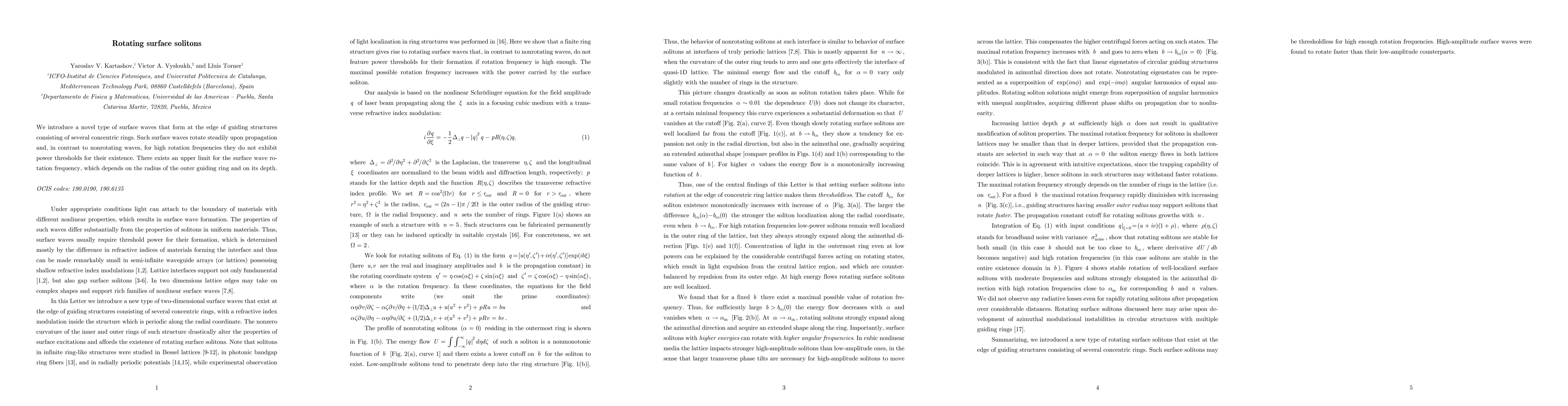 We introduce a novel type of surface waves that form at the edge of guiding structures consisting of several concentric rings. Such surface waves rotate steadily upon propagation and, in contrast to nonrotating waves, for high rotation frequencies they do not exhibit power thresholds for their existence. There exists an upper limit for the surface wave ro-tation frequency, which depends on the radius of the outer guiding ring and on its depth.