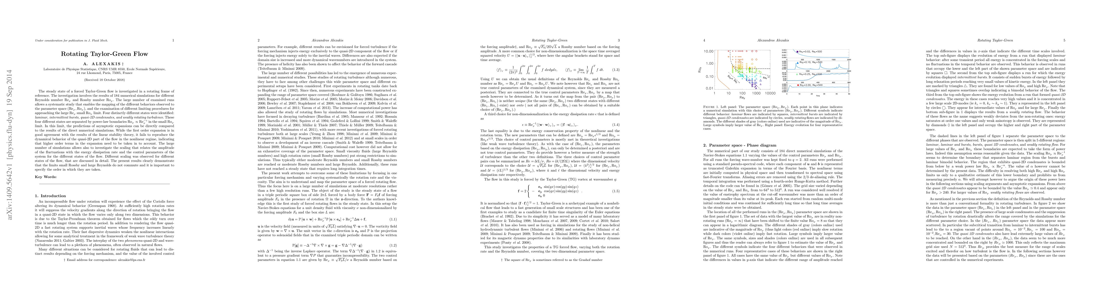 Researchers studied a rotating Taylor-Green flow with 184 numerical simulations to identify four distinct states: laminar, intermittent bursts, quasi-2D condensates, and weakly rotating turbulence, separated by power-law boundaries in the small Rossby number limit.