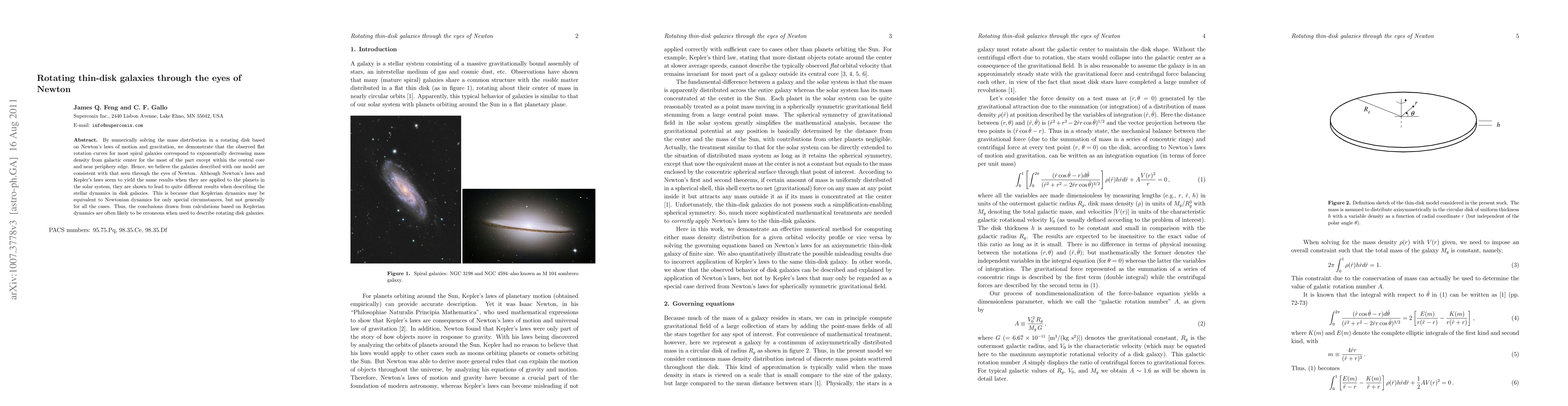 By numerically solving the mass distribution in a rotating disk based on Newton's laws of motion and gravitation, we demonstrate that the observed flat rotation curves for most spiral galaxies correspond to exponentially decreasing mass density from galactic center for the most of the part except within the central core and near periphery edge. Hence, we believe the galaxies described with our model are consistent with that seen through the eyes of Newton. Although Newton's laws and Kepler's laws seem to yield the same results when they are applied to the planets in the solar system, they are shown to lead to quite different results when describing the stellar dynamics in disk galaxies. This is because that Keplerian dynamics may be equivalent to Newtonian dynamics for only special circumstances, but not generally for all the cases. Thus, the conclusions drawn from calculations based on Keplerian dynamics are often likely to be erroneous when used to describe rotating disk galaxies.