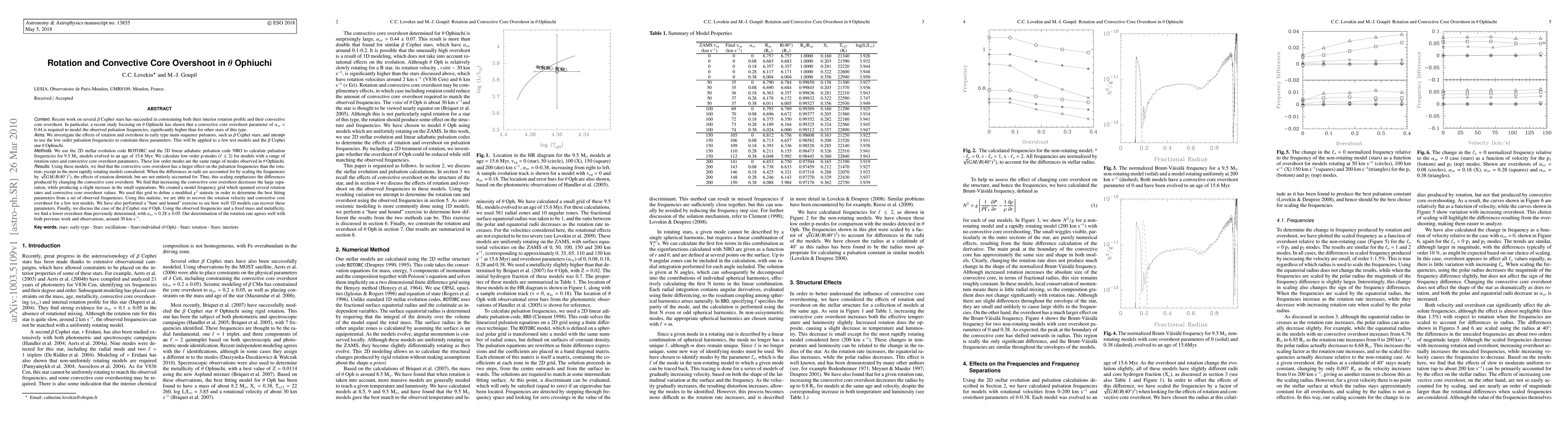 This paper investigates the effects of rotation and convective core overshoot on the pulsation frequencies of beta Cephei stars, focusing on theta Ophiuchi. It finds that overshoot significantly impacts the frequencies more than rotation, except in rapidly rotating models. For theta Oph, the study determines a lower convective core overshoot parameter (alpha = 0.28 +/- 0.05) and a rotation rate of ~30 km/s.