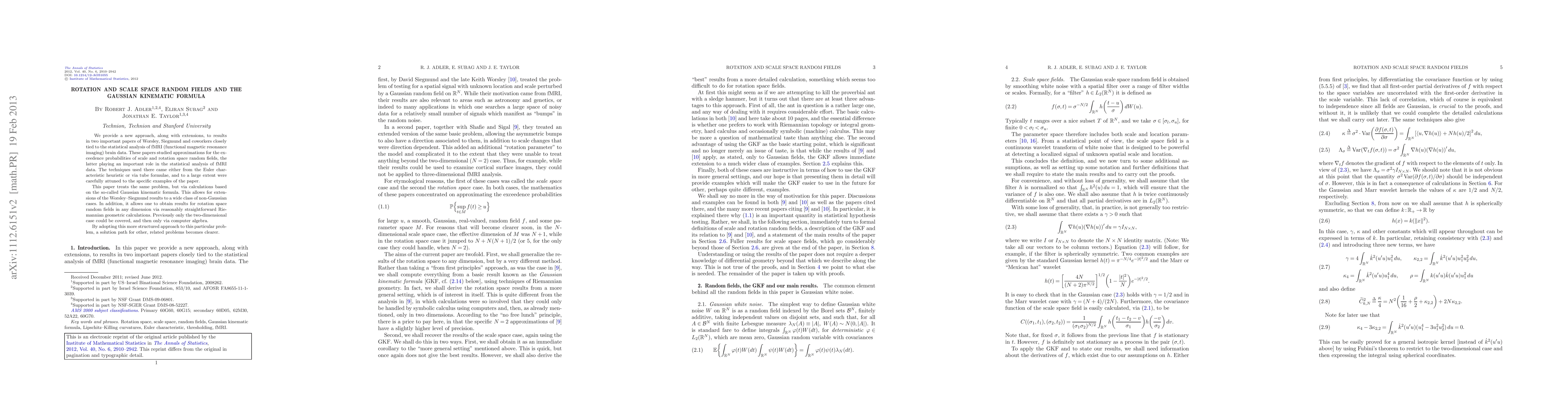This paper introduces a new approach using the Gaussian kinematic formula to extend statistical analysis methods for fMRI brain data, previously limited to specific examples and two-dimensional cases. It provides a more general solution for rotation and scale space random fields applicable in any dimension.