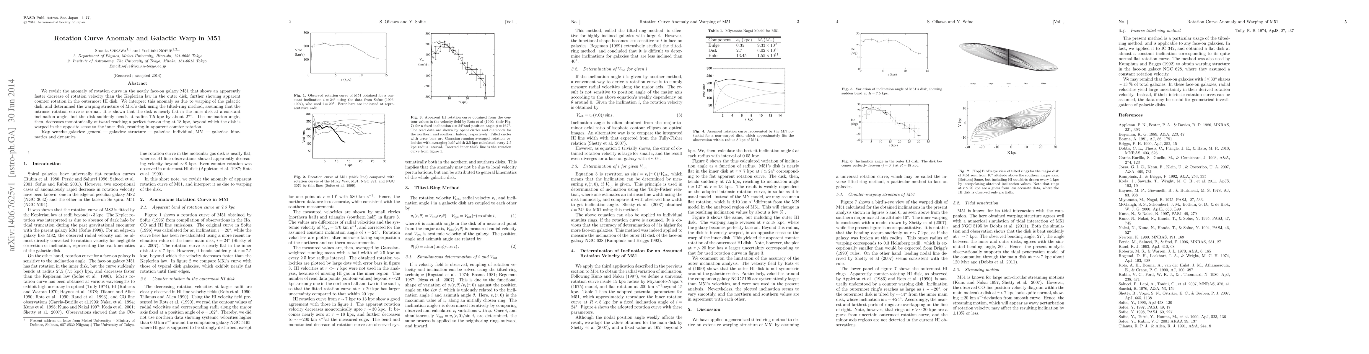 This paper investigates the rotation curve anomaly in M51, attributing the faster-than-expected decrease in outer disk rotation to galactic warp. The tilted-ring method reveals a sudden bending of the disk at 7.5 kpc, leading to a monotonic decrease in inclination angle and apparent counter-rotation in the outermost HI disk.