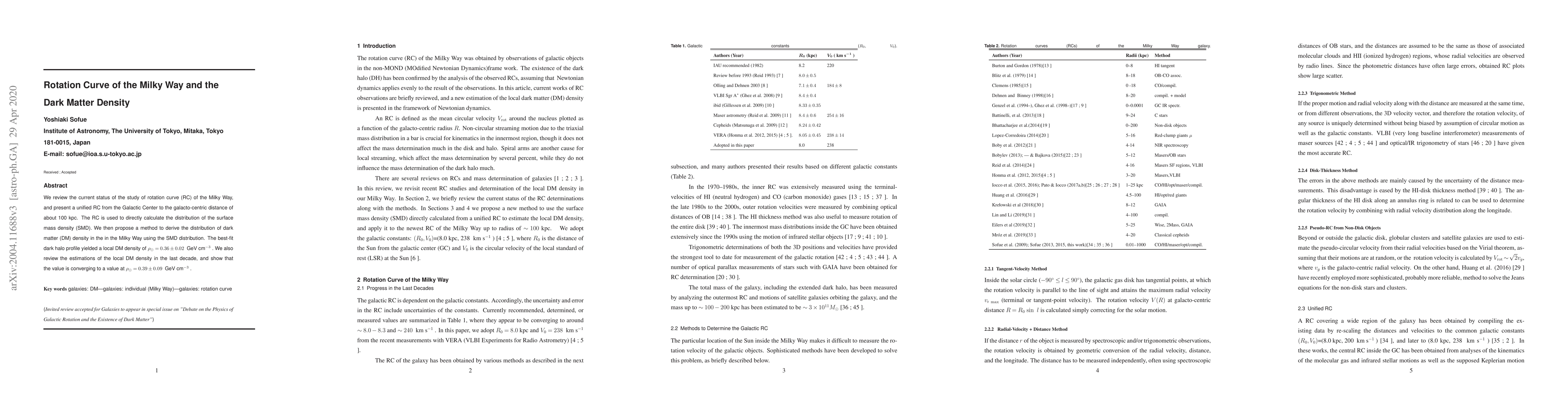 This paper reviews the Milky Way's rotation curve and presents a unified curve extending to 100 kpc, using it to calculate surface mass density and derive a dark matter density profile. The best-fit model yields a local dark matter density of $\rho_\odot = 0.36\pm 0.02$ GeV/cc, aligning with recent decade-long estimates converging around $\rho_\odot=0.39\pm 0.09$ GeV/cc.
