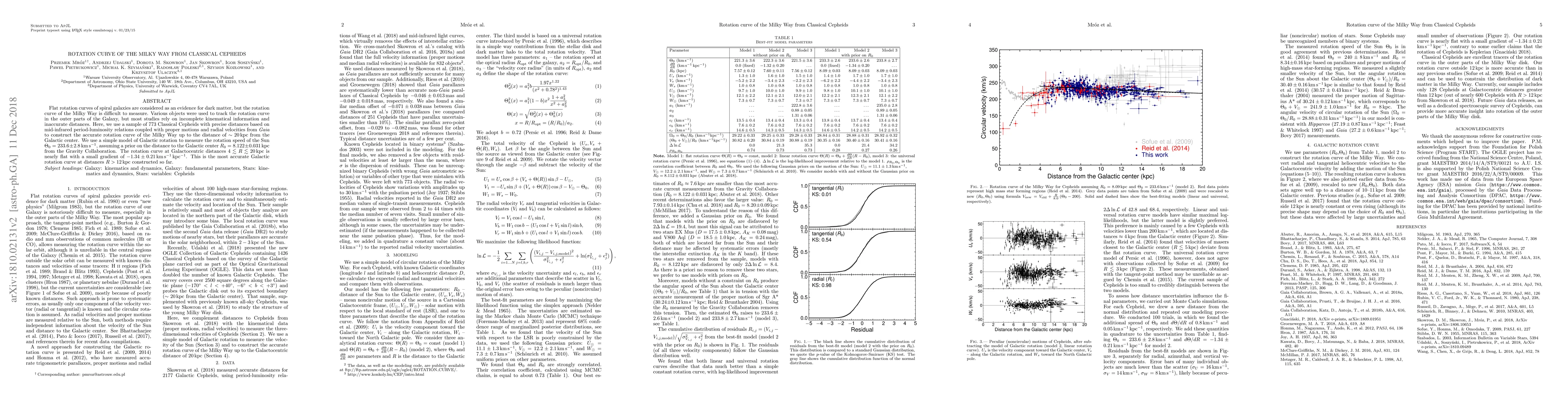 This study uses 773 Classical Cepheids with precise distances to construct an accurate Milky Way rotation curve up to 20 kpc, revealing a nearly flat curve with a small gradient, supporting dark matter models. The derived rotation speed of the Sun is Theta_0 = 233.6 +/- 2.8 km/s.