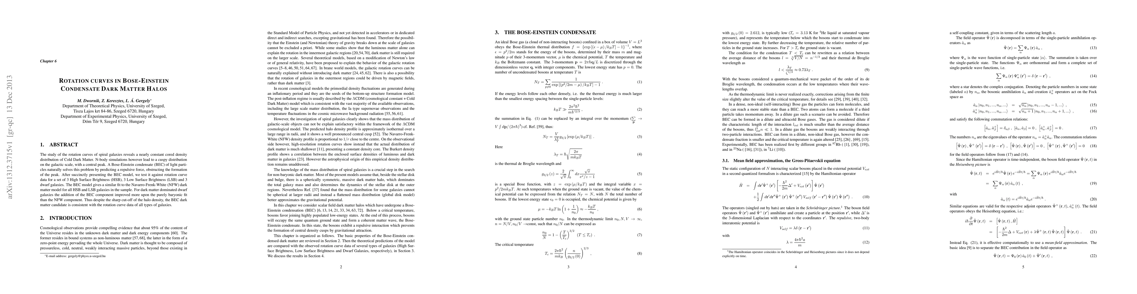 This paper proposes a Bose-Einstein condensate (BEC) model to explain the observed flat rotation curves in galaxies, suggesting it avoids the cuspy density distribution predicted by NFW dark matter models. The BEC model fits rotation curves of various galaxies similarly to NFW, and provides a better fit for dwarf galaxies than the NFW model.