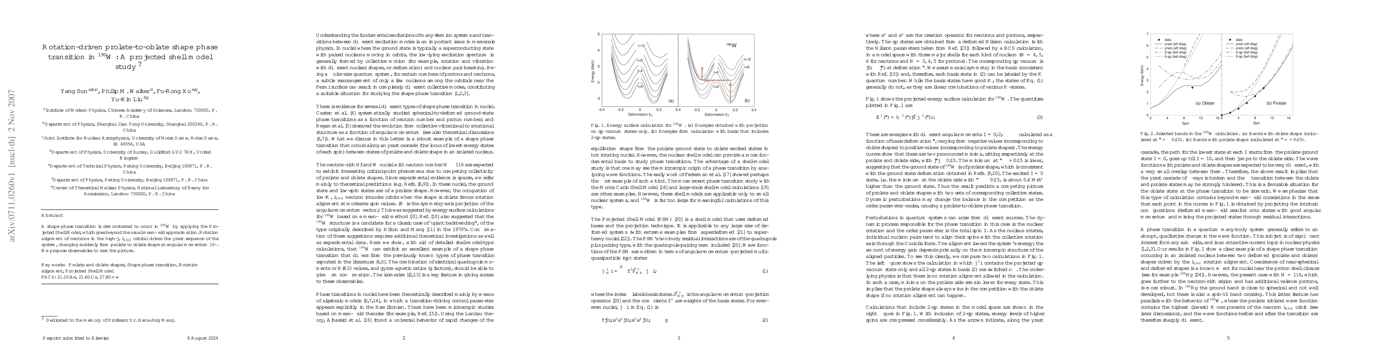 The Projected Shell Model reveals a rotation-driven shape phase transition in 190W, transitioning from prolate to oblate at 10$\hbar$ angular momentum, driven by neutron alignment in the i_{13/2} orbital. Proposed observables aim to validate this transition.