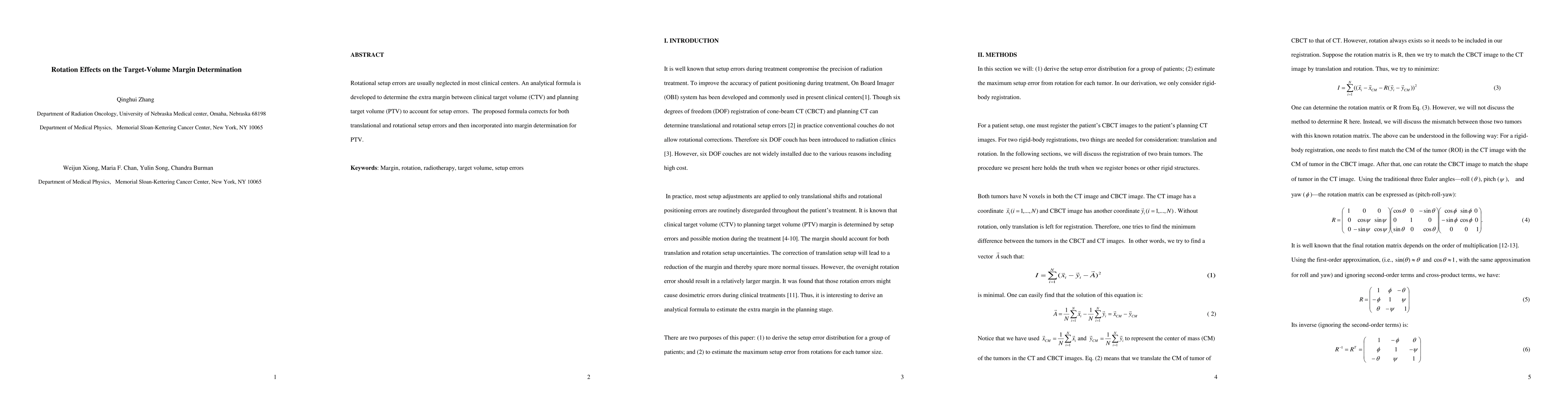 This research introduces an analytical formula to calculate additional margin needed between CTV and PTV to account for both translational and rotational setup errors, often overlooked in clinical practice.