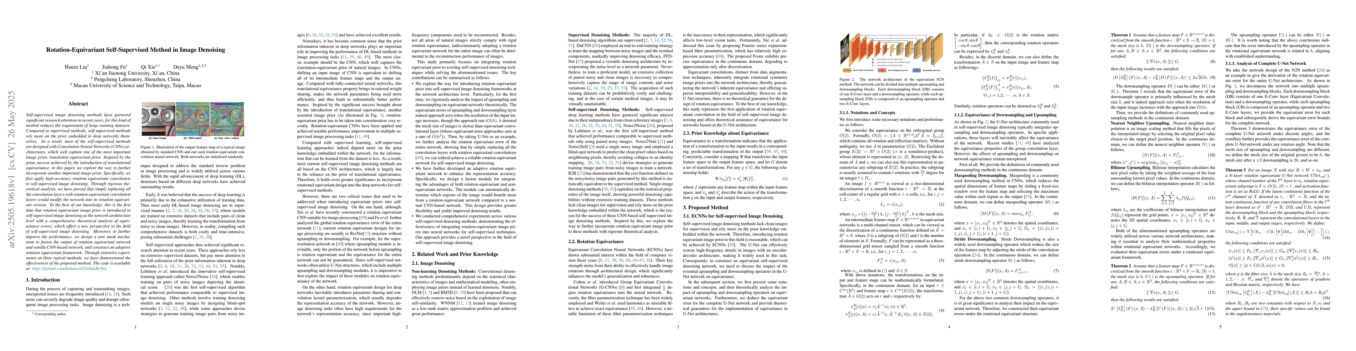 This paper proposes a rotation-equivariant self-supervised method for image denoising, leveraging rotation equivariance to improve performance, and demonstrating its effectiveness through experiments.