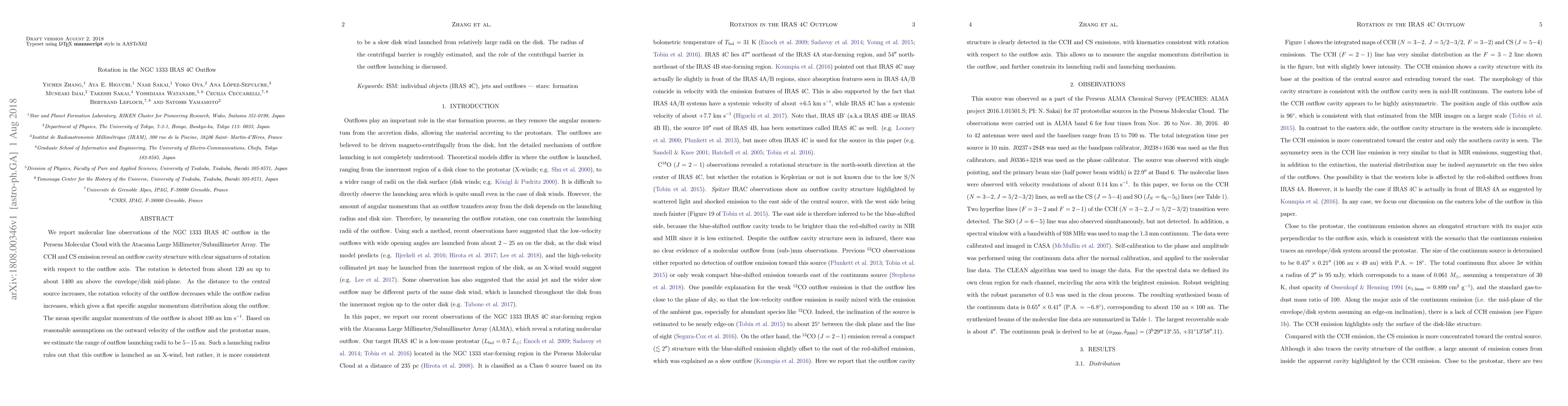 We report molecular line observations of the NGC 1333 IRAS 4C outflow in the Perseus Molecular Cloud with the Atacama Large Millimeter/Submillimeter Array. The CCH and CS emission reveal an outflow cavity structure with clear signatures of rotation with respect to the outflow axis. The rotation is detected from about 120 au up to about 1400 au above the envelope/disk mid-plane. As the distance to the central source increases, the rotation velocity of the outflow decreases while the outflow radius increases, which gives a flat specific angular momentum distribution along the outflow. The mean specific angular momentum of the outflow is about 100 au km/s. Based on reasonable assumptions on the outward velocity of the outflow and the protostar mass, we estimate the range of outflow launching radii to be 5-15 au. Such a launching radius rules out that this outflow is launched as an X-wind, but rather, it is more consistent to be a slow disk wind launched from relatively large radii on the disk. The radius of the centrifugal barrier is roughly estimated, and the role of the centrifugal barrier in the outflow launching is discussed.