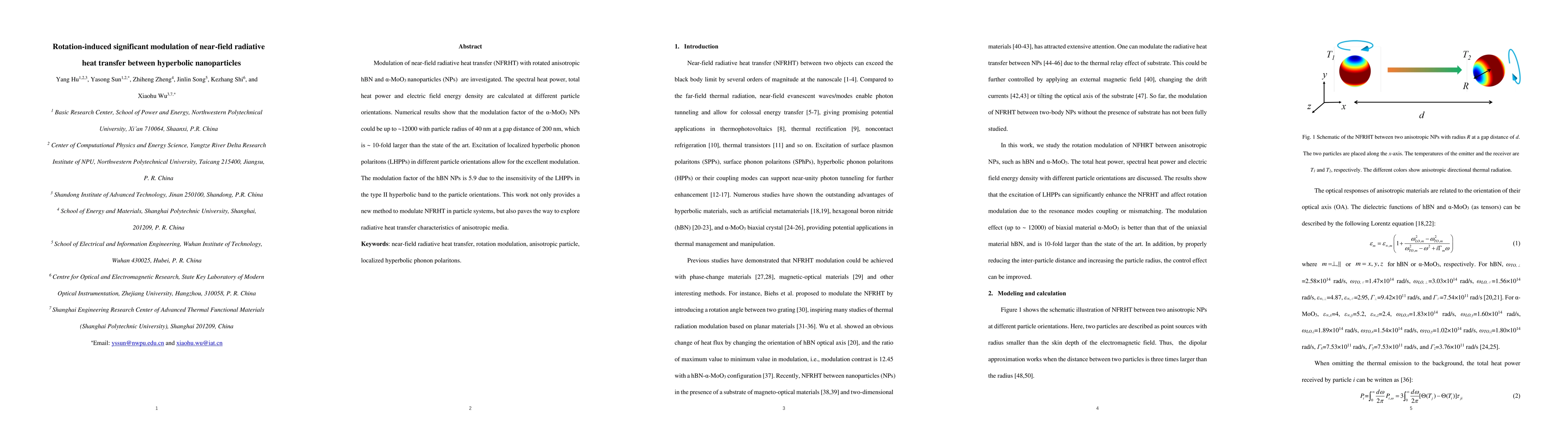 This paper investigates the modulation of near-field radiative heat transfer (NFRHT) using rotated anisotropic hBN and MoO3 nanoparticles, revealing significant modulation factors. The study finds that MoO3 NPs can achieve a modulation factor of up to ~12000, significantly higher than current standards, due to the excitation of localized hyperbolic phonon polaritons.