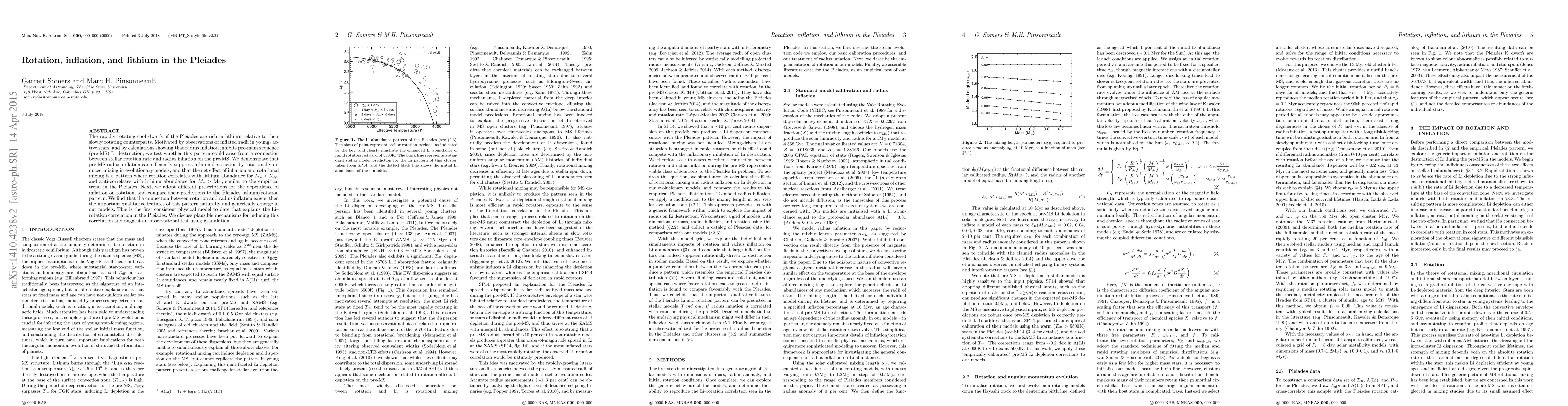 The paper proposes a model linking stellar rotation rate, radius inflation, and lithium abundance in Pleiades stars, showing that pre-MS radius inflation suppresses lithium destruction, explaining the observed correlation between rotation and lithium abundance. The study suggests that this correlation naturally arises from a connection between rotation and inflation, offering a plausible mechanism for the observed trend.