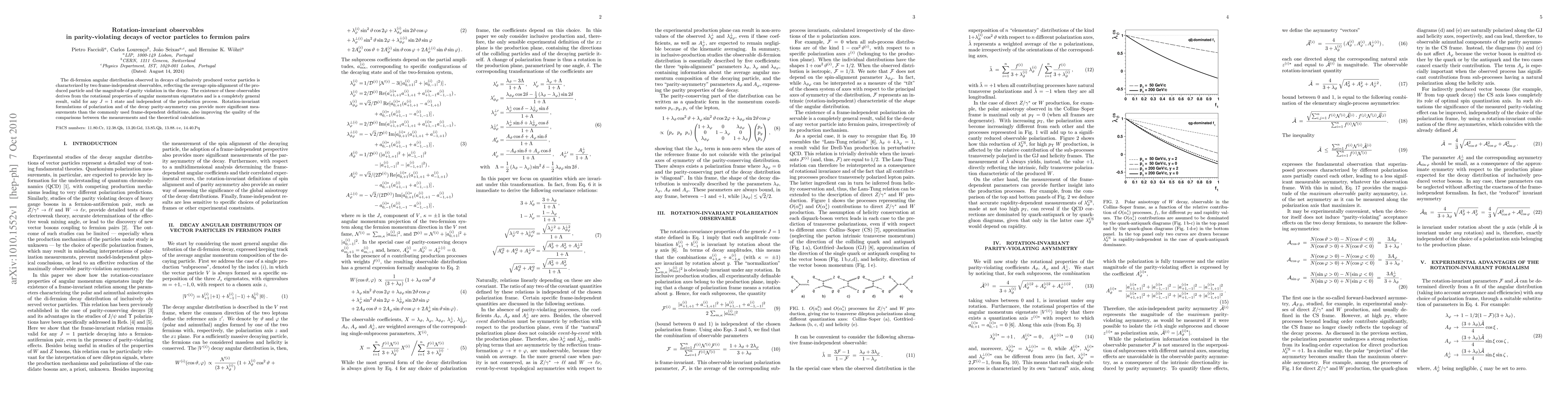 This research identifies two rotation-invariant observables in parity-violating decays of vector particles to fermion pairs, reflecting spin-alignment and parity violation. These observables, applicable to any J=1 state and unaffected by production processes, offer more significant measurements and better theoretical comparison than frame-dependent definitions.