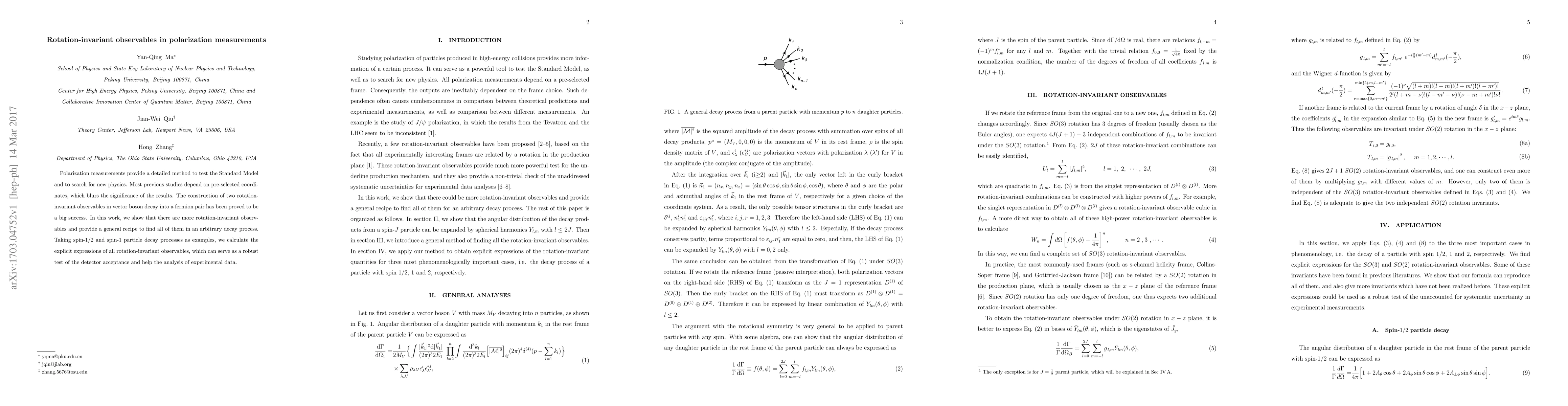 Polarization measurements provide a detailed method to test the Standard Model and to search for new physics. Most previous studies depend on pre-selected coordinates, which blurs the significance of the results. The construction of two rotation-invariant observables in vector boson decay into a fermion pair has been proved to be a big success. In this work, we show that there are more rotation-invariant observables and provide a general recipe to find all of them in an arbitrary decay process. Taking spin-1/2 and spin-1 particle decay processes as examples, we calculate the explicit expressions of all rotation-invariant observables, which can serve as a robust test of the detector acceptance and help the analysis of experimental data.