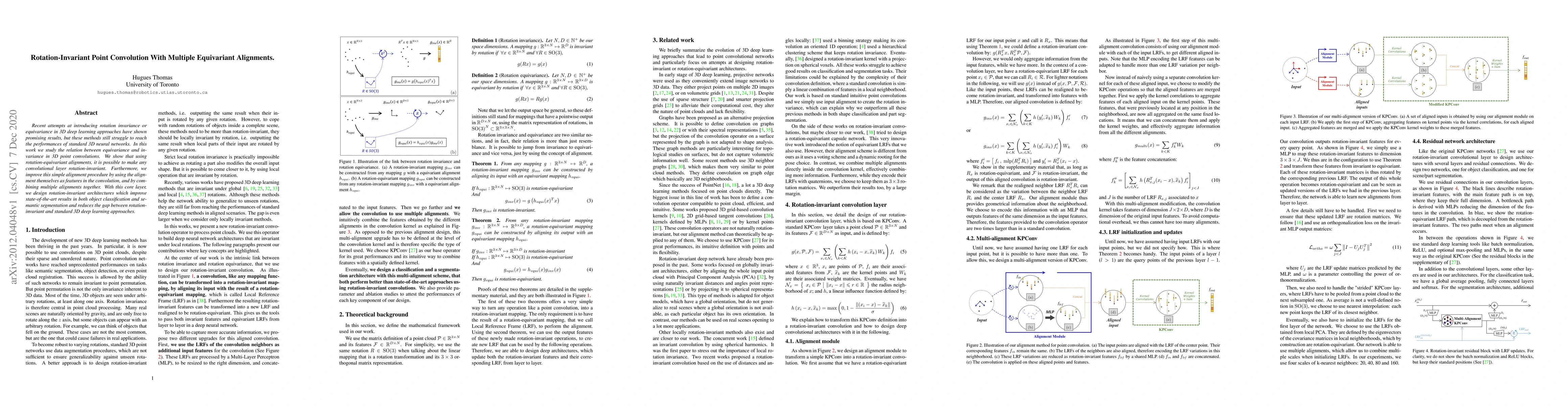 Recent attempts at introducing rotation invariance or equivariance in 3D deep learning approaches have shown promising results, but these methods still struggle to reach the performances of standard 3D neural networks. In this work we study the relation between equivariance and invariance in 3D point convolutions. We show that using rotation-equivariant alignments, it is possible to make any convolutional layer rotation-invariant. Furthermore, we improve this simple alignment procedure by using the alignment themselves as features in the convolution, and by combining multiple alignments together. With this core layer, we design rotation-invariant architectures which improve state-of-the-art results in both object classification and semantic segmentation and reduces the gap between rotation-invariant and standard 3D deep learning approaches.