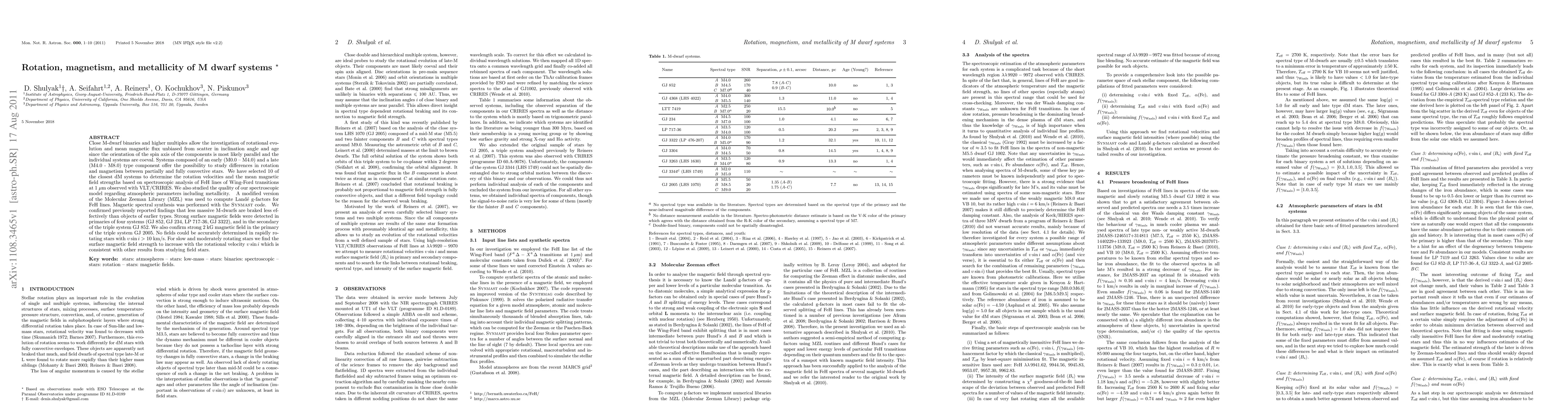 This study investigates M dwarf systems, finding that less massive stars have weaker magnetic fields and some systems exhibit strong surface magnetic fields, while rapidly rotating stars show no detectable fields.