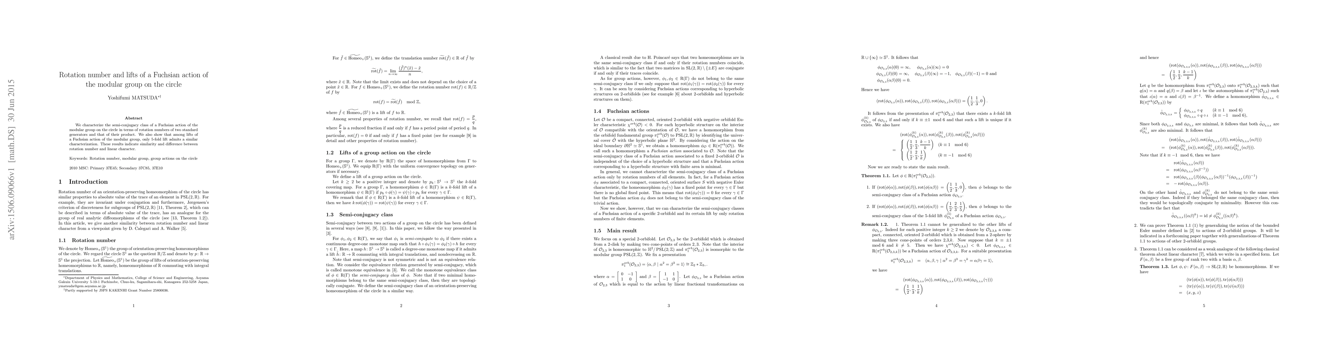 Researchers characterized Fuchsian actions of the modular group on the circle in terms of rotation numbers, showing similarities between linear character and rotation number for 5-fold lifts, but differences for other lifts.