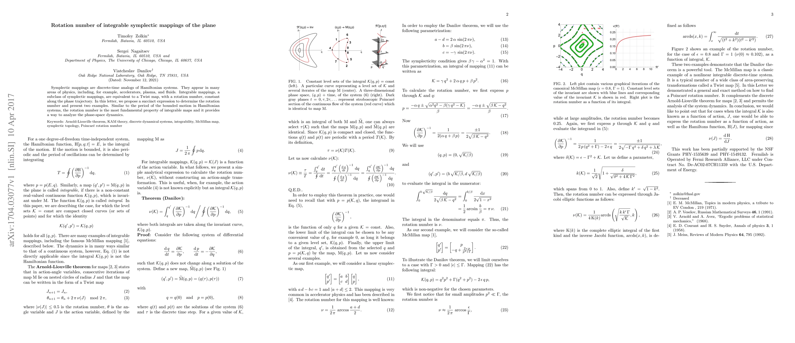 A paper proposes a way to calculate the rotation number of integrable symplectic mappings in the plane, a fundamental property that helps analyze phase-space dynamics.